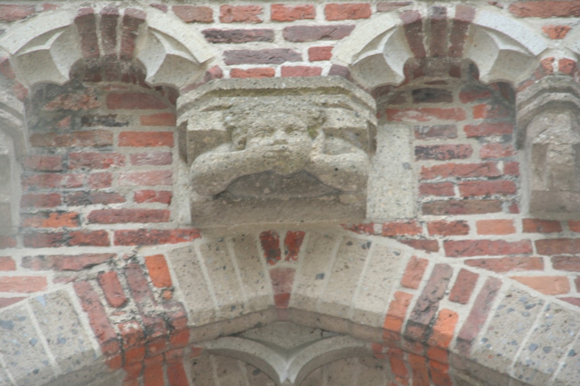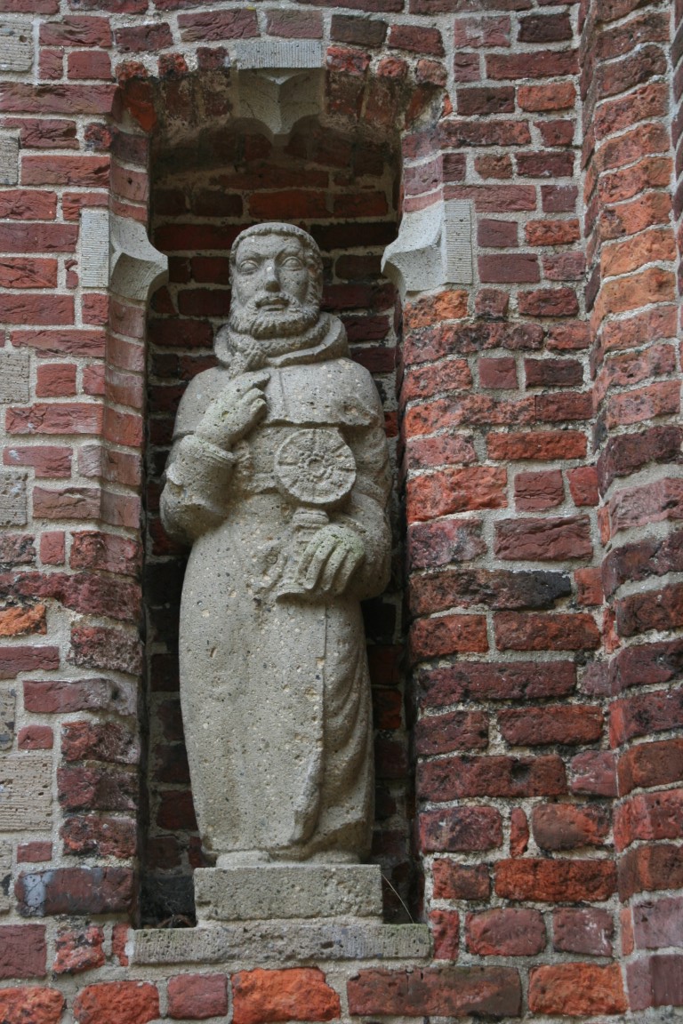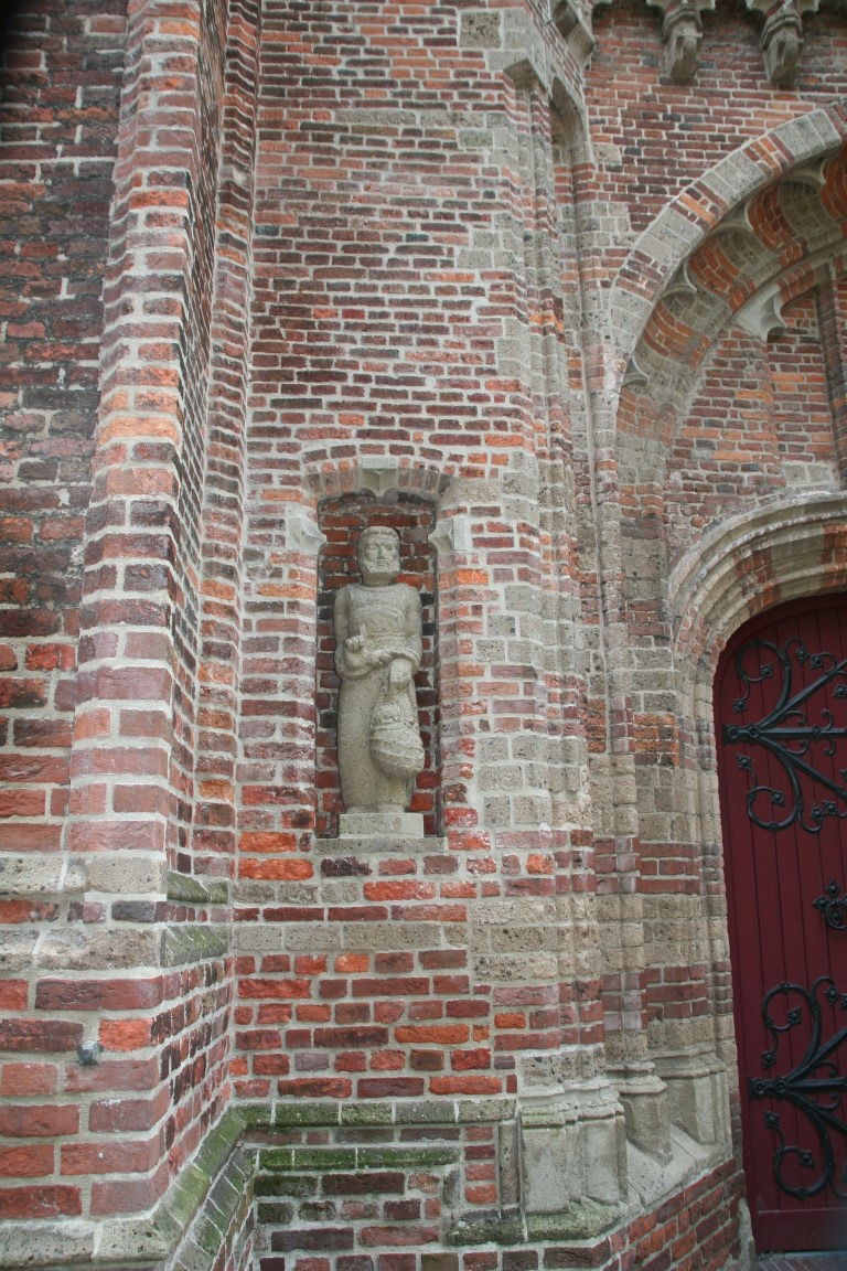 De oud aandoende beelden van Sint-Petrus en Adrianus van Hilvarenbeek die de ingang flankeren dateren van de jaren 50 van de 20e eeuw