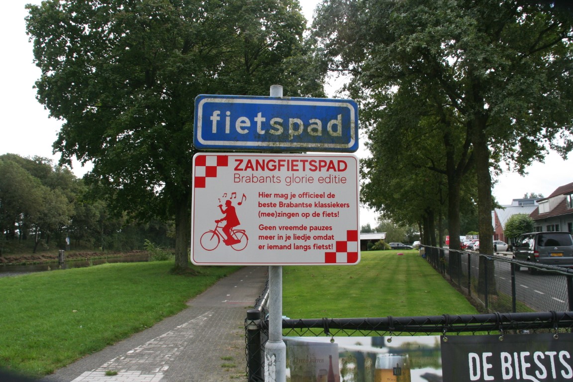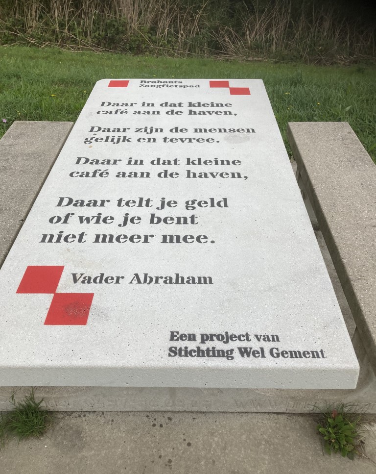 Zangkoor ” De Bonte Kakelkippen” beet het spits af bij de eerste picnictafel met het lied “Als Brabander ben ik geboren”.. En dan verder naar de tweede tafel met het lied “Hé goade mee ” van Gerard van Maasakkers. Aan de derde tafel zat Cees Priems, onze Biestse Troubadour met de zachte G , al op ons te wachten met het “Brabants Volkslied” Brabant van Guus Meeuwis. En natuurlijk kon ook het “Biests Volkslied” De Biest mun dörpke van Dorus niet ontbreken. En aangezien we intussen bij de haven waren aangeland bracht het “Roos Trio” de meezinger van Vader Abraham ten gehore.