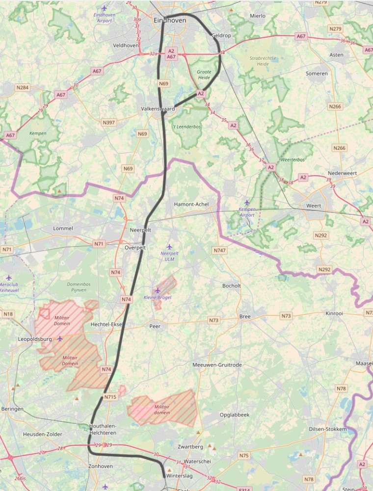 De route gaat verder over de oude spoorbaan, Valkenswaard – Eindhoven (Bels lijntje). Deze lijn maakte deel uit van de spoorlijn 18, Winterslag – Eindhoven.