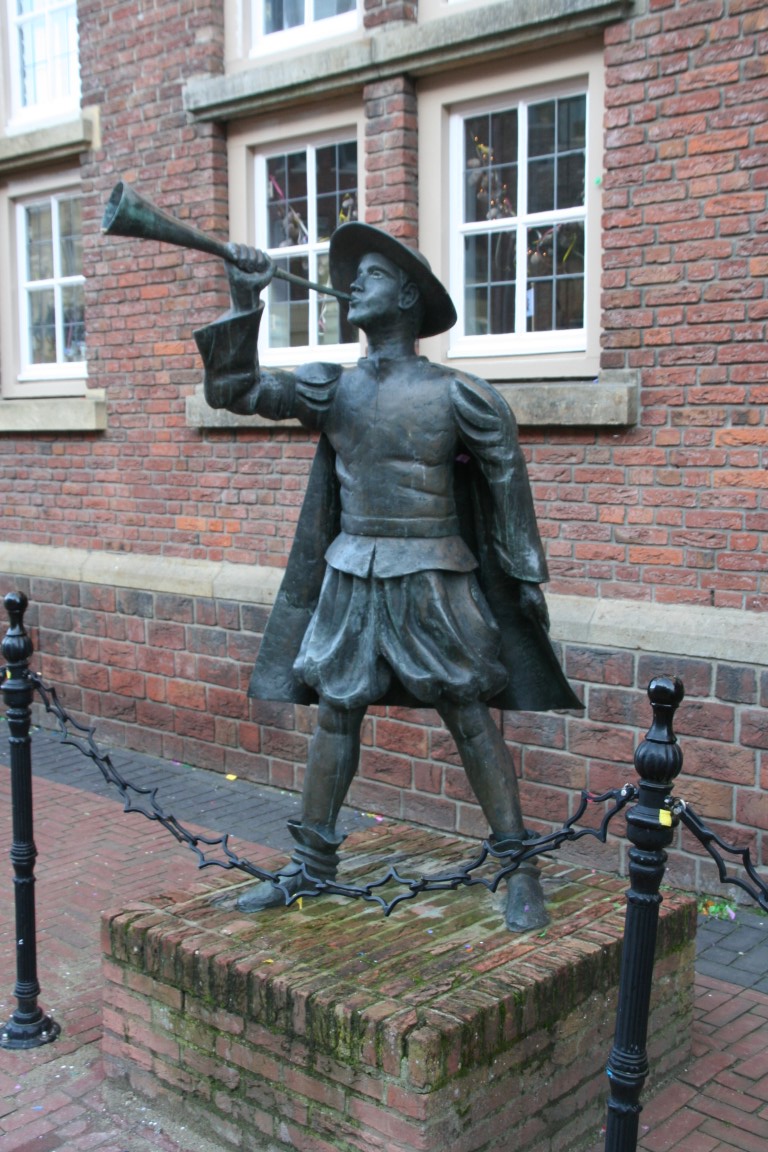 Voor het stadhuis staat de Heraut. De heraut verbeeldt de oude stads-omroeper, maar kondigt ook met ‘klaroengeschal’ het huwelijk van bruidsparen aan, die de stadhuistrappen betreden.