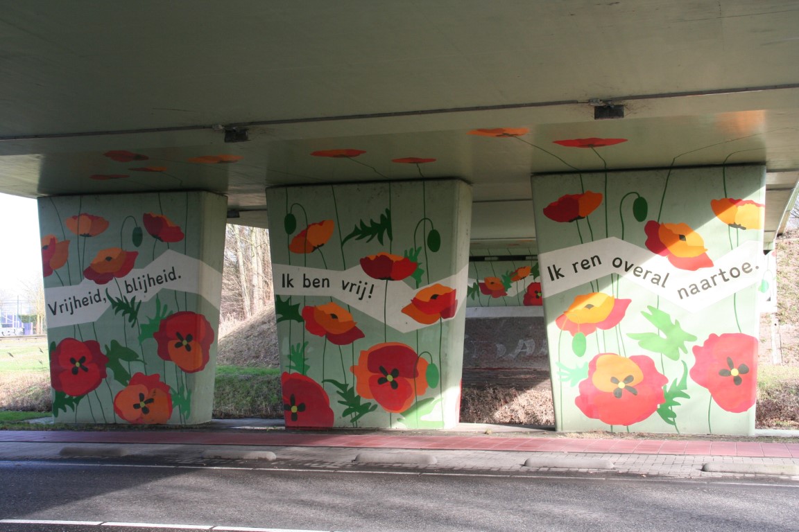 We passeren de snelweg A4 en wandelen richting Steenbergen.