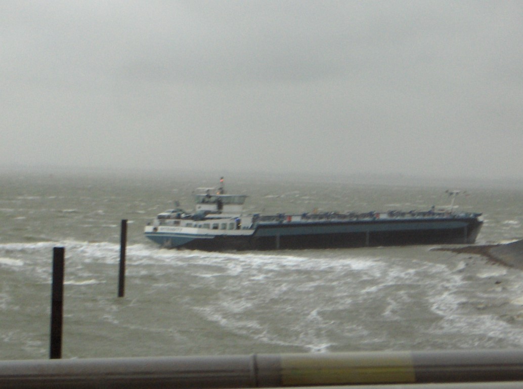 Deze boot was leeg tentijde van het op de zeedijk lopen ten gevolge van de harde wind. Hij kwam op eigen kracht weer los.