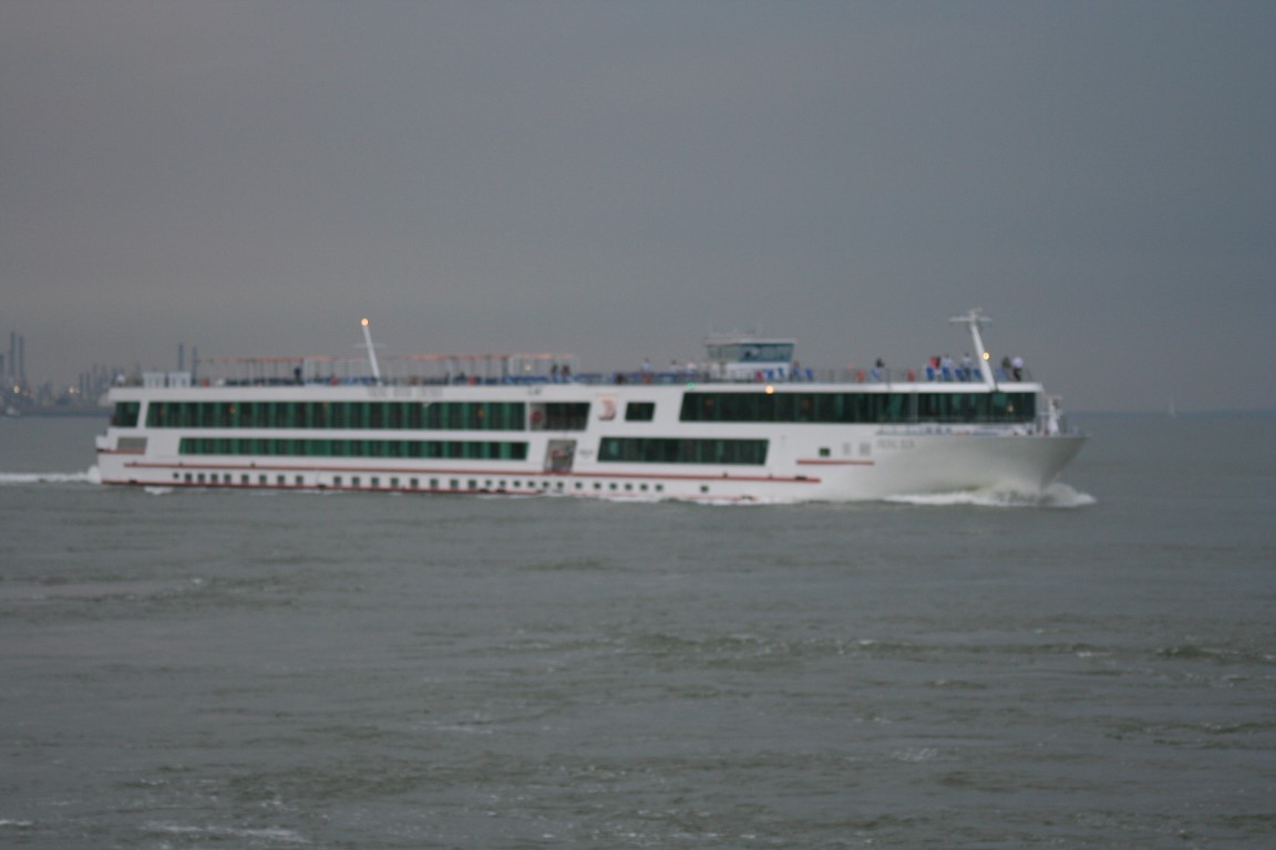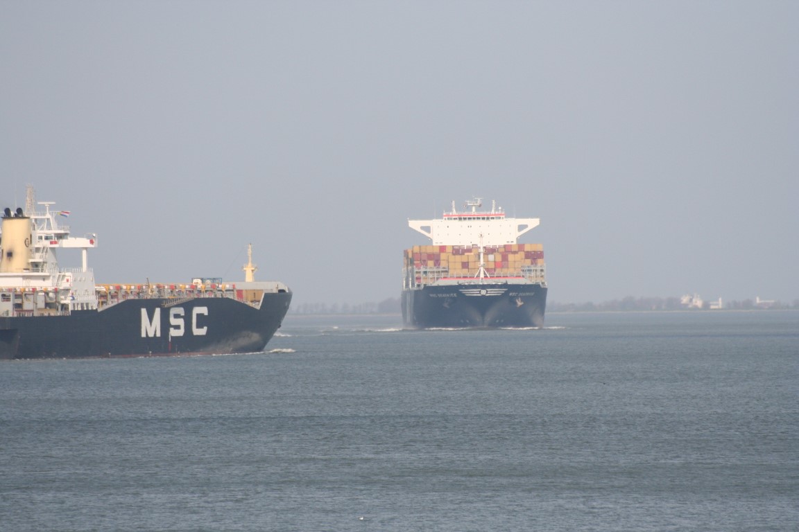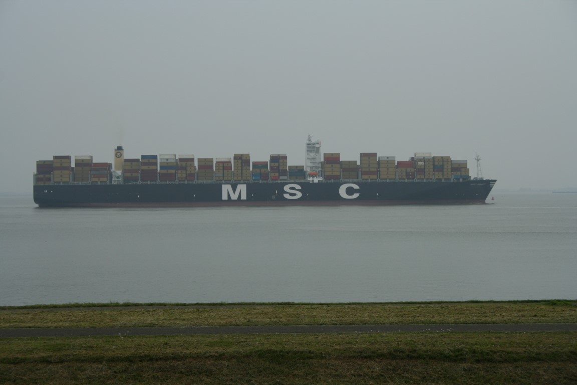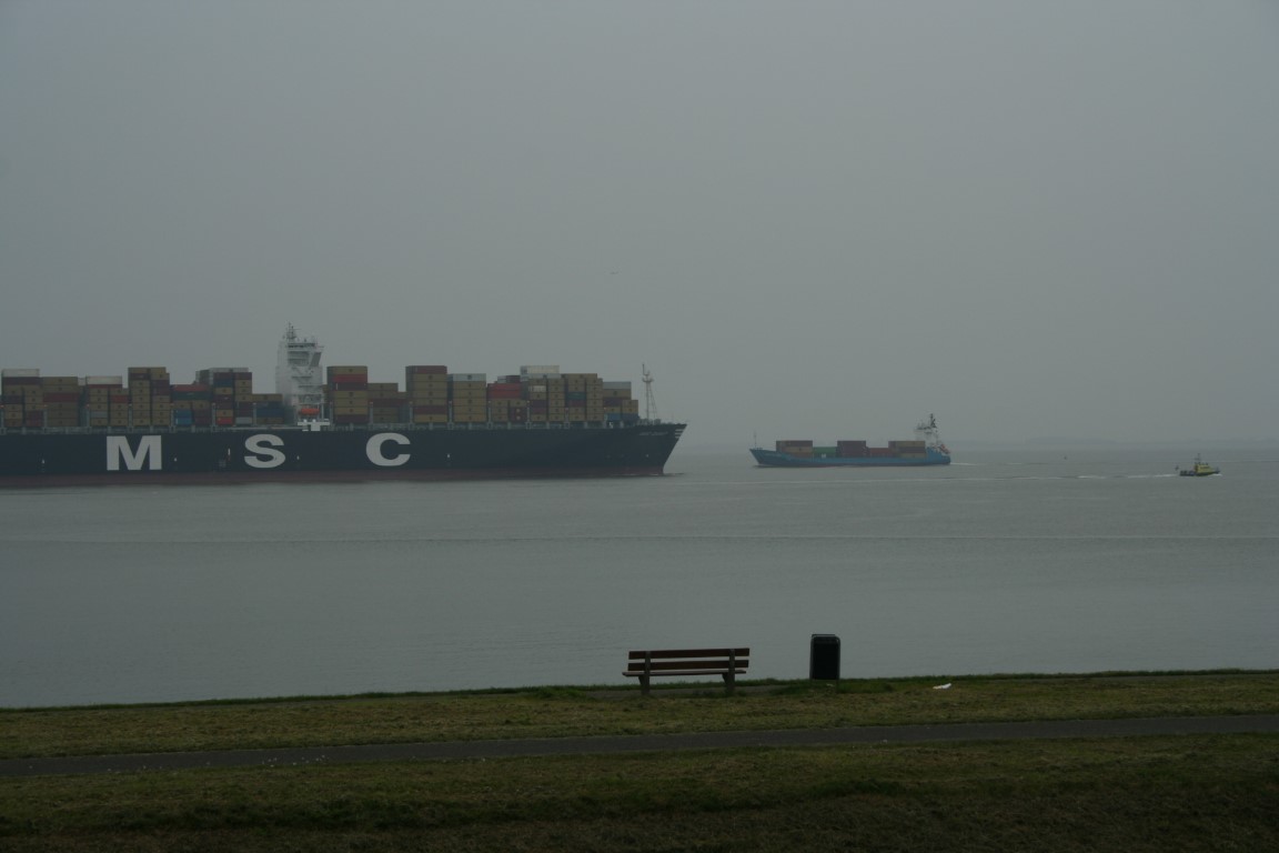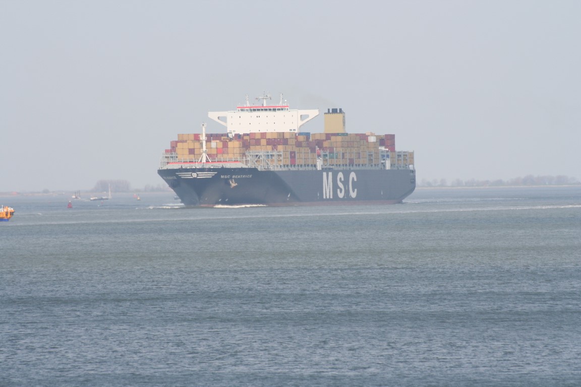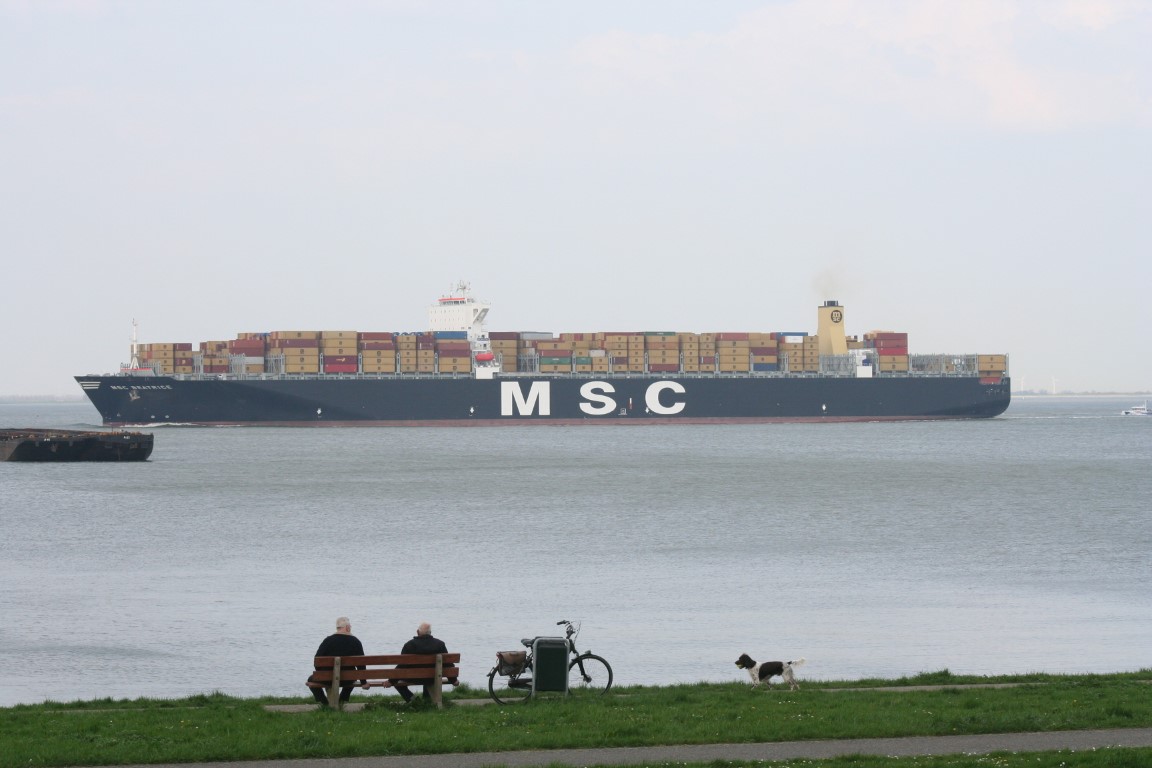 MSC Beatrice. Het eerste reuzencontainerschip in 2009 onderweg naar Antwerpen. Was toen een van de grootste containerschepen ter wereld. De belangstelling langs de waterkant was groot!