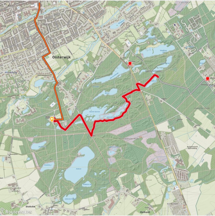 De wandeling begint in Oisterwijk bij het station. Vandaar is het wandelen naar het officiële startpunt, het bezoekerscentrum van Natuurmonumenten.