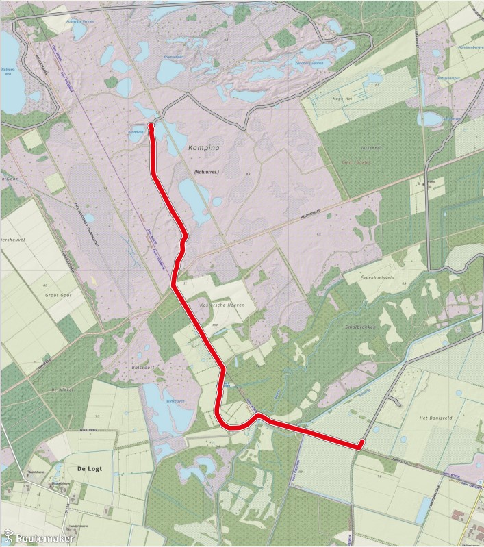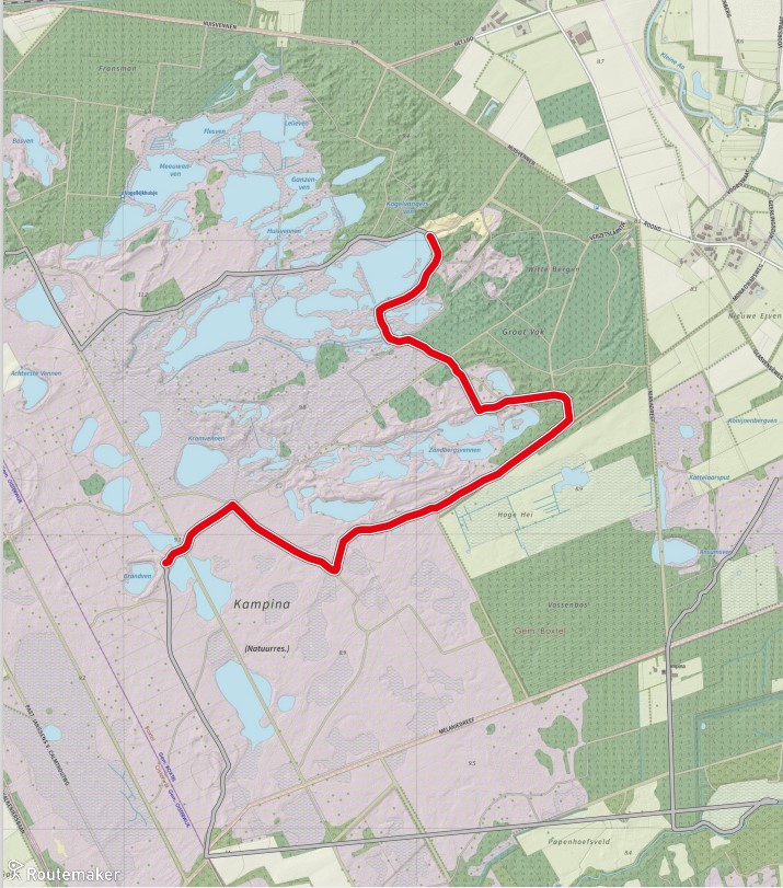 Zodra de Rosep gepasseerd, is gaat de wandeling richting de Kampina. De naam Kampina is afgeleid van het Romeinse ‘Campina’, een andere naam voor Kempen, dat ‘woeste grond’ betekent. Dit uitgestrekte natuurgebied van Natuurmonumenten ligt tussen Oisterwijk en Boxtel en heeft een zeer afwisselend landschap. Uitgestrekte heidevelden, smalle beekjes en vennen zoals het Belversven, de Huisvennen en de Zandbergsvennen leveren prachtige beelden op.