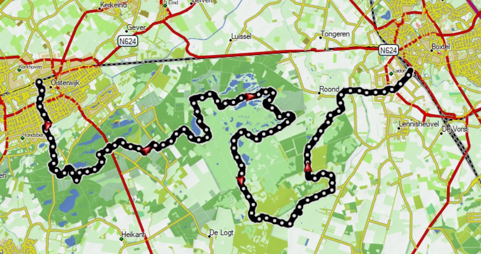 Eerste etappe van Oisterwijk naar Boxtel. Een afstand van 24,6 km.