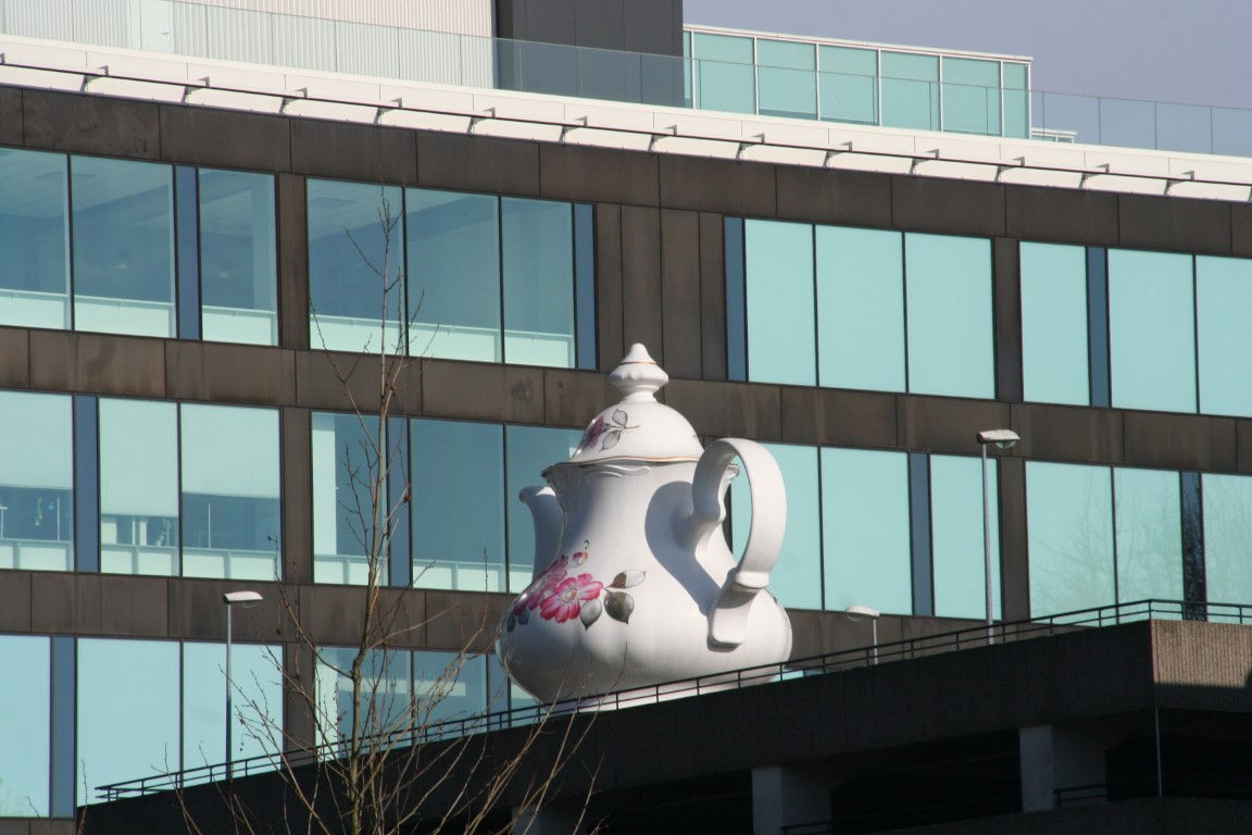 De bijna 7 meter hoge theepot, een kunstwerk van Lily van der Stokker en getiteld Celestial Teapot, stond lang op de traverse van Hoog Catharijne. Toen daar gebouwd ging worden werd het gevaarte weggehaald en verplaatst naar de parkeergarage aan de Rijnkade.