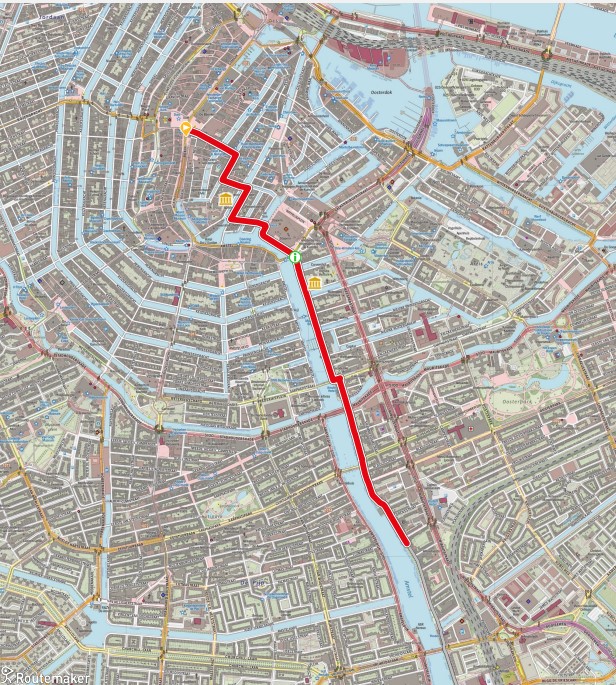 Wandelen door het historisch centrum van de stad Amsterdam, langs de Weespertrekvaart naar Driemond waar de drie stromen het Gein, de Gaasp en Smal Weesp bij elkaar komen. Verderop staat wipmolen ’t Haantje in Weesp, misschien wel het mooiste bouwwerk langs de route. De route start op de dam in Amsterdam.