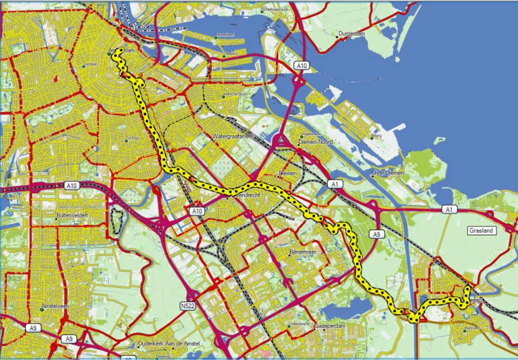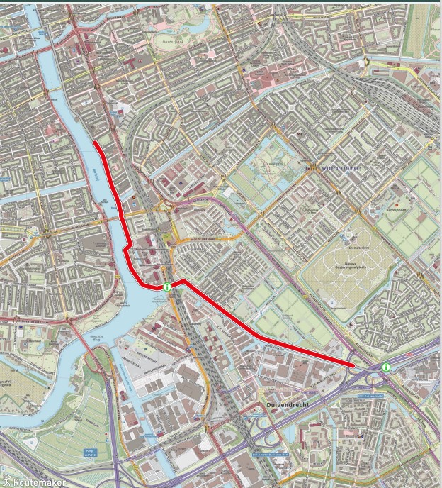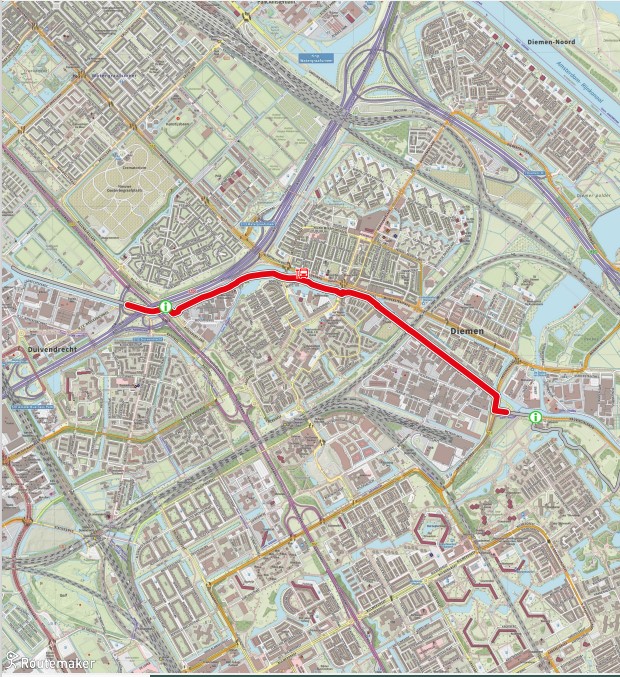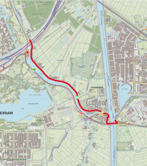 Wandelend langs de Gaasp richting Driemond, daarna over de brug bij Driemond over de Gaasp richting de Weesperbrug over het Amsterdam – Rijnkanaal.