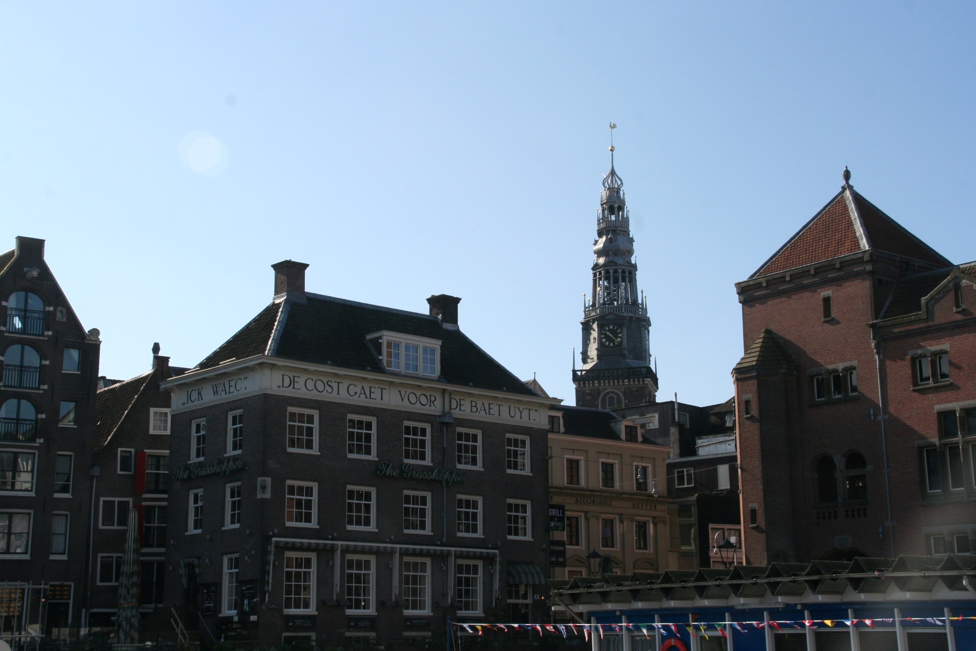 Rechts de klok welke in de toren van de beurs van Berlage zit.