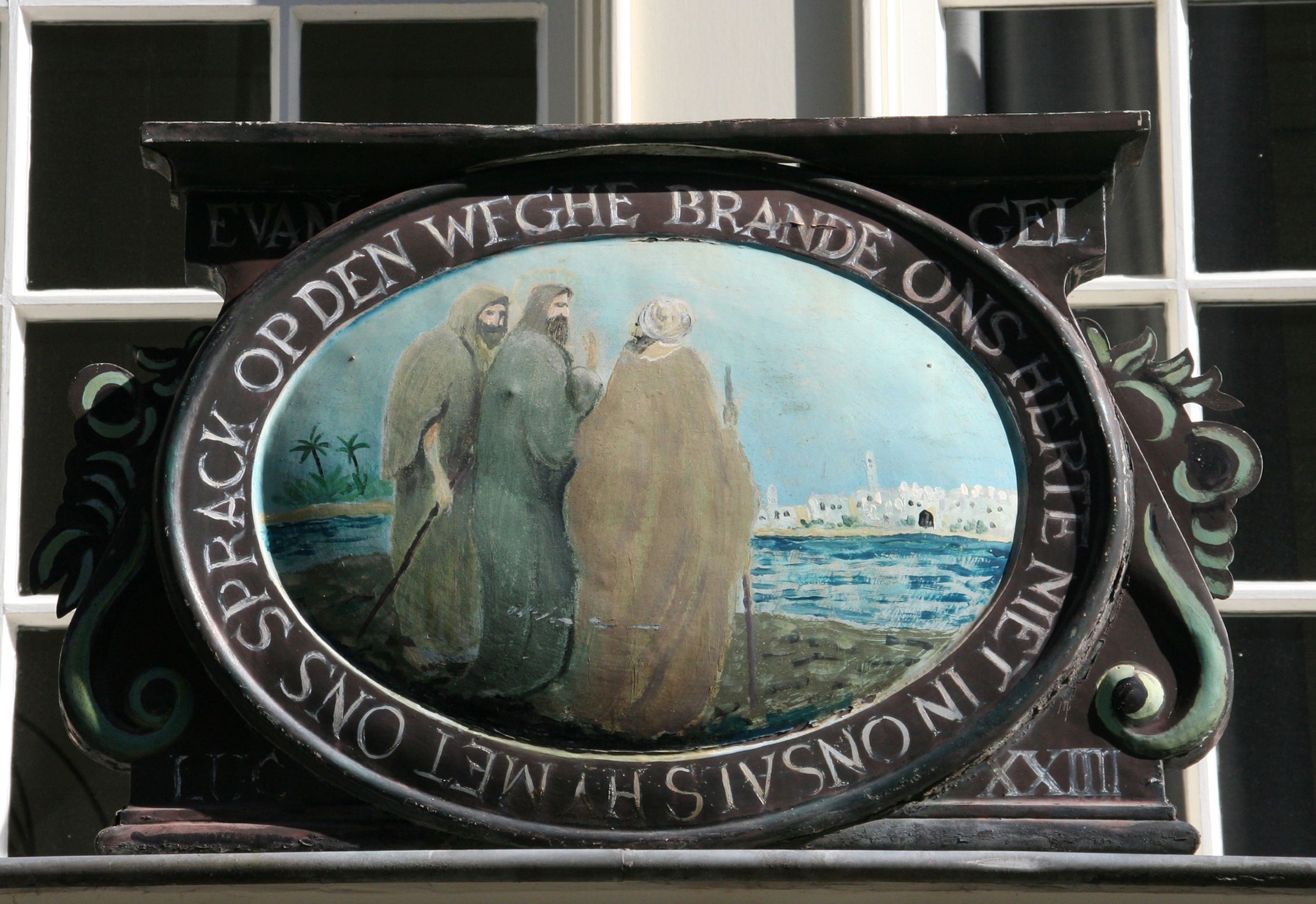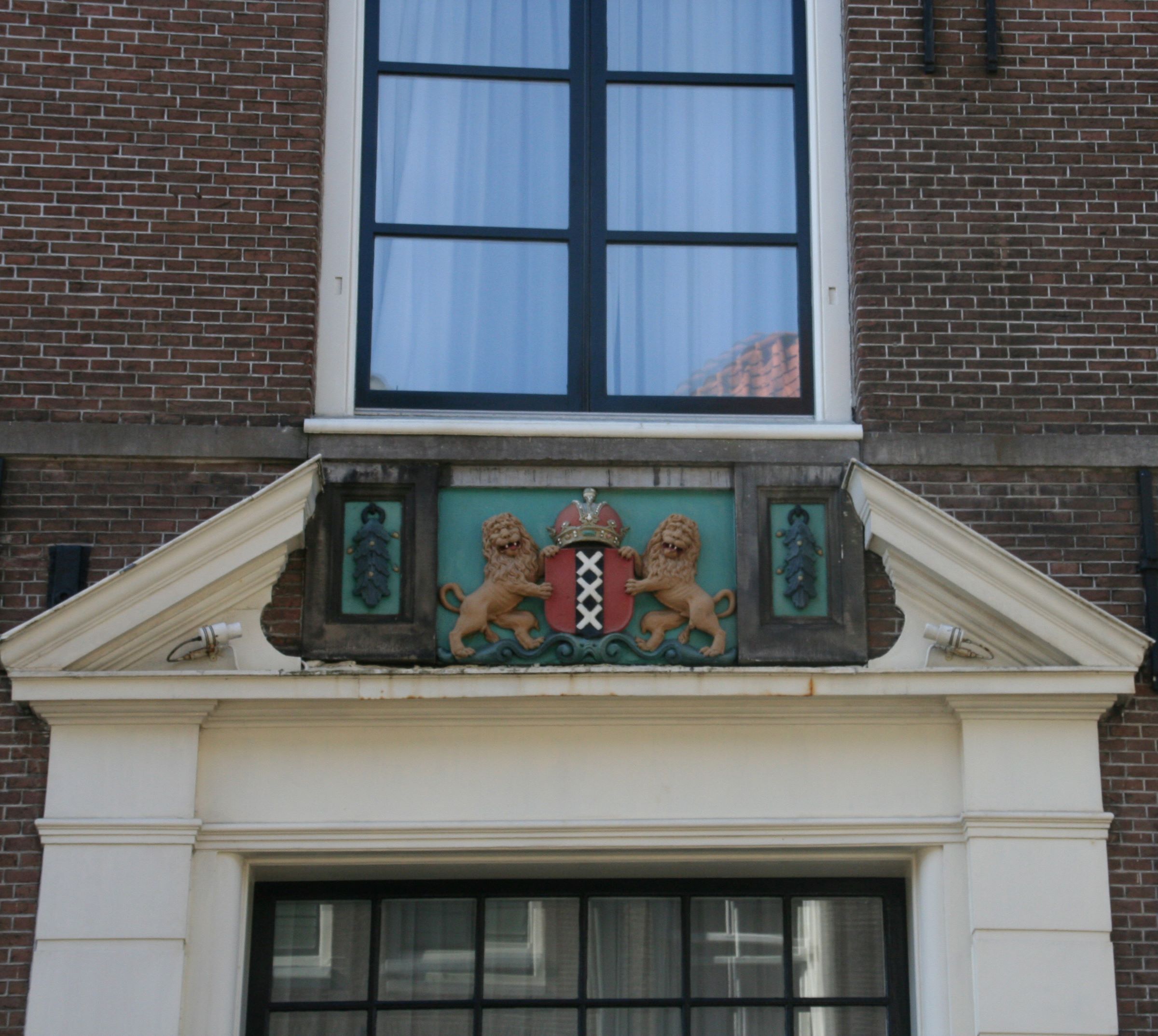 De cost gaet voor de baet uyt. Laat-18de-eeuws hoekpand, bijna geheel losstaand, met een omlopend schilddak en klossenlijst met consoles; in 1912/13 met een verdieping verhoogd. Staat bekend als “De cost gaet voor de baet uyt”. Het markante hoekpand in het natte Damrak was oorspronkelijk het Bierdragerskantoor.