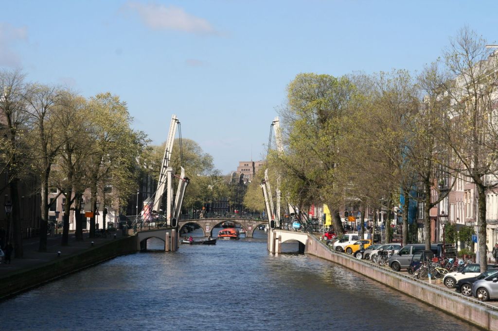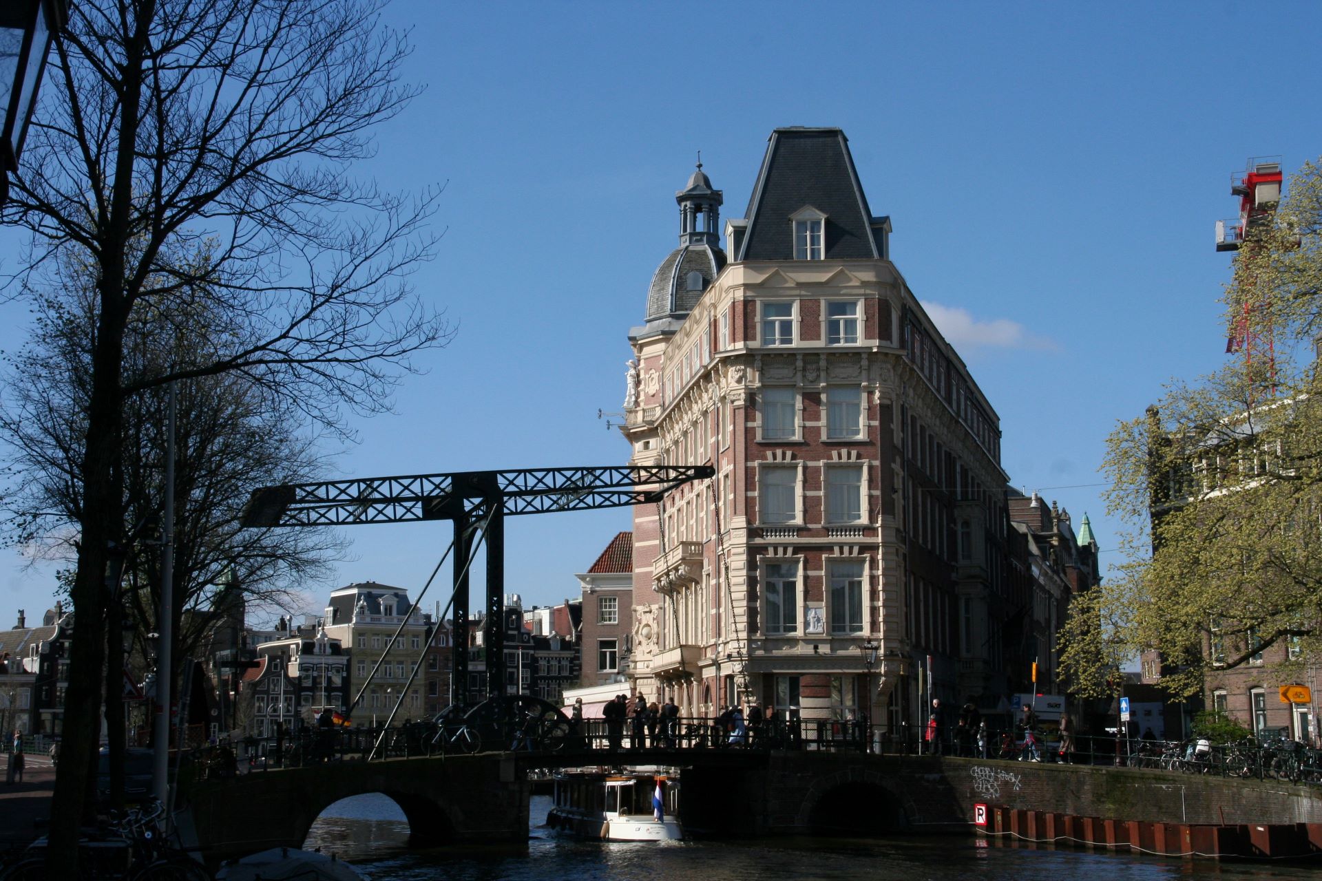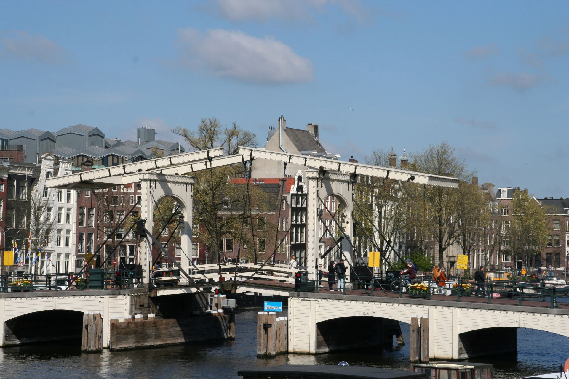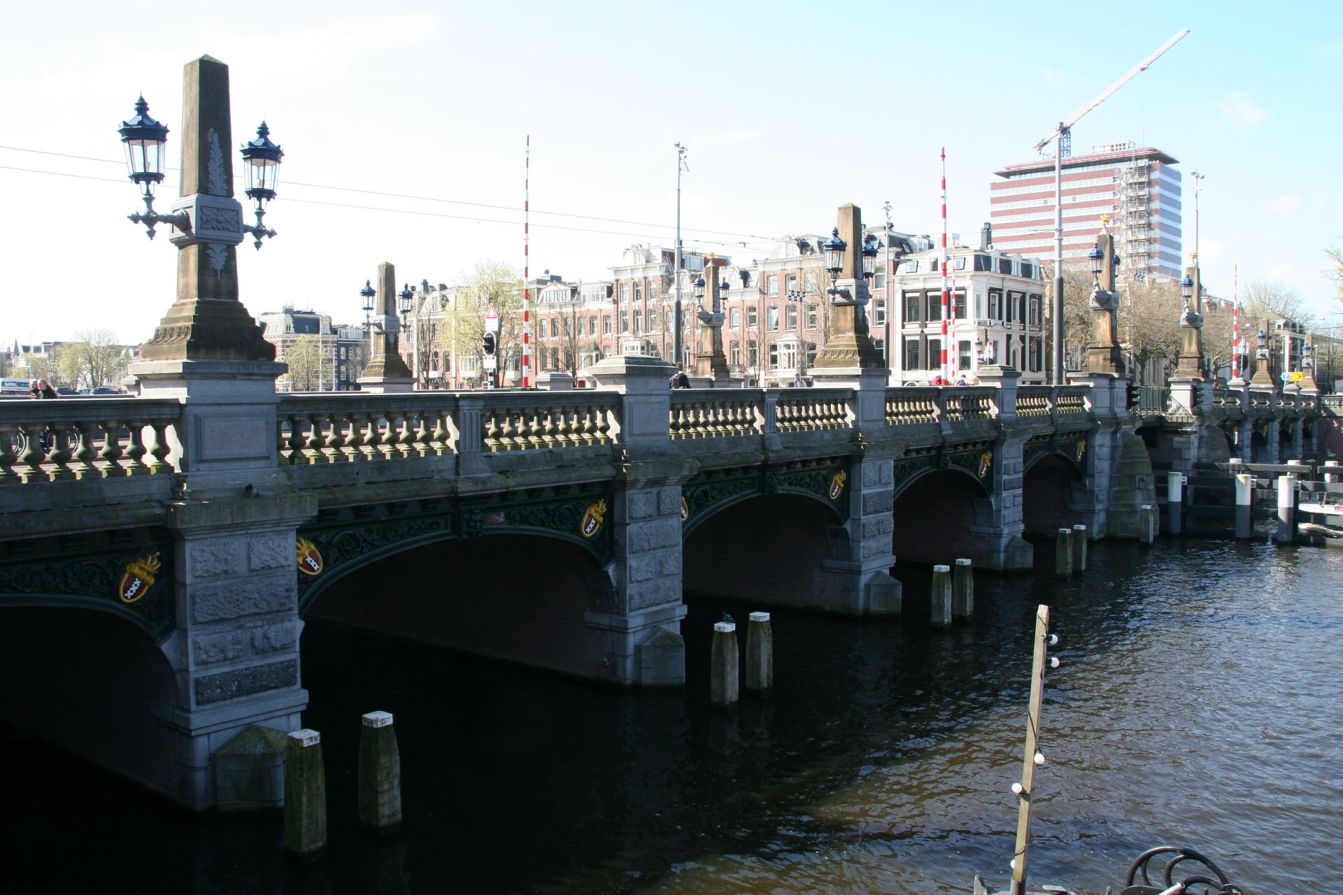 Via de Hogesluisbrug, een Amsterdamse monumentale dubbele basculebrug, welke is versierd met sierstukken van gietijzer (met stadswapens), een natuurstenen vaasbalustrade, obelisken van natuursteen met gedecoreerde lantaarndragers en bijpassende lantaarns, gaan we richting Amstel hotel.