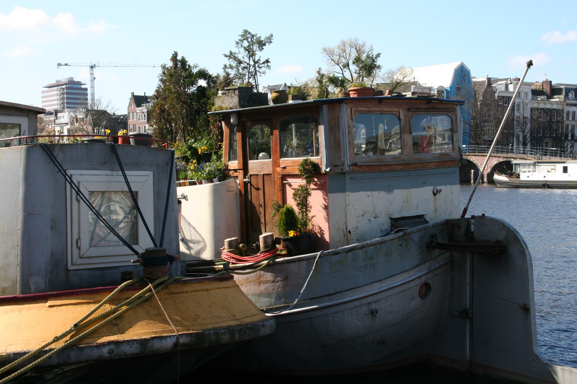 Wandelend langs de Amstel kom je ook deze woonboten tegen.