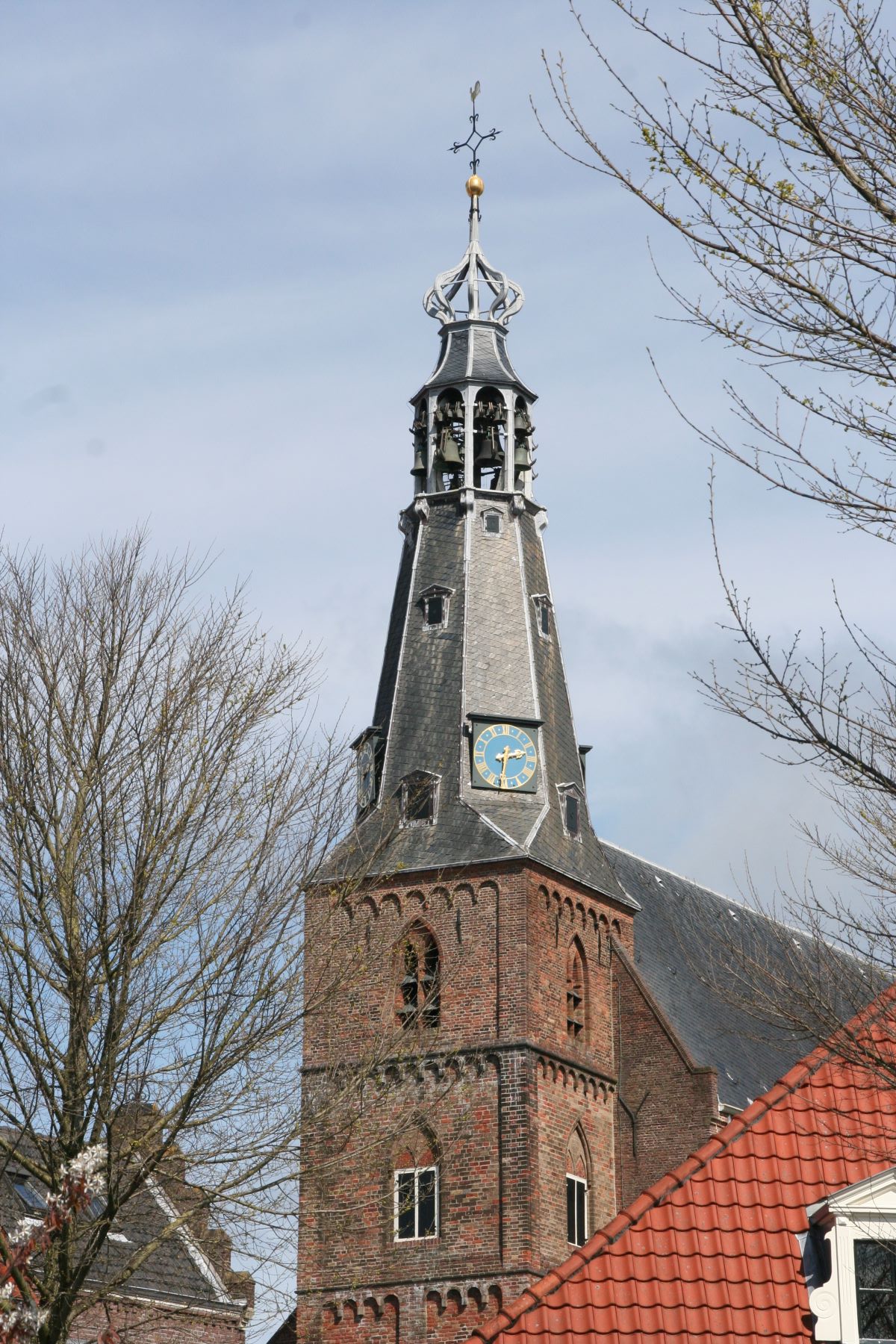 De kerk van de PKN, de kerktoren van de Grote of St. Laurenskerk in Weesp. En de lange Vechtbrug. Het startpunt van de volgende etappe.