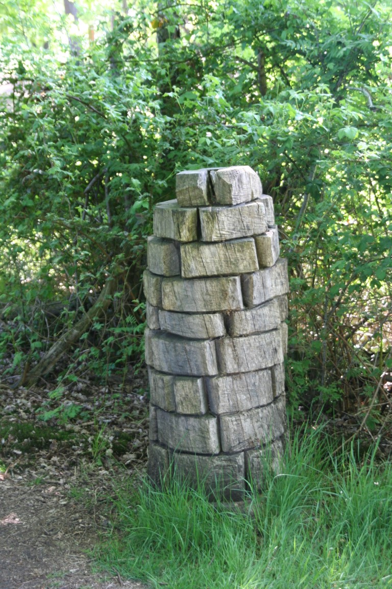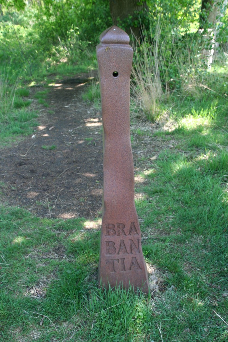 Aan het einde van het Turfstekerspad sta je bijna op de grens tussen Limburg en Noord-Brabant. Er ligt daar een grenssteen tussen de begroeiing. Die steen kun je vanaf het pad helaas niet zien en een prikkeldraadversperring houd je tegen. In plaats daarvan staat er een namaakpaal die artistiek gezien misschien beter ook snel overwoekerd mag raken.