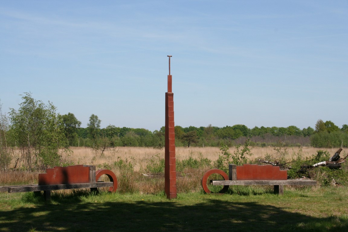 Je herkent een Peeltroef aan het beeld van een lokale kunstenaar. Het zijn een pilaar van metershoog veen, alsof de turfstekers net dat stukje gemist hebben. En twee turfkruiwagens, die bij nadere inspectie zitbankjes lijken te zijn.