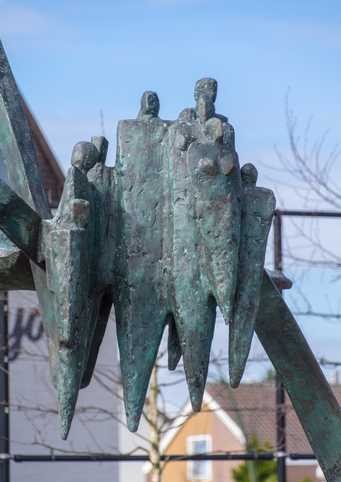 Van links naar rechts: Turfblokken De turfsteker. Het reizend gezag of Bisschop te paard Mens en natuur in evenwicht