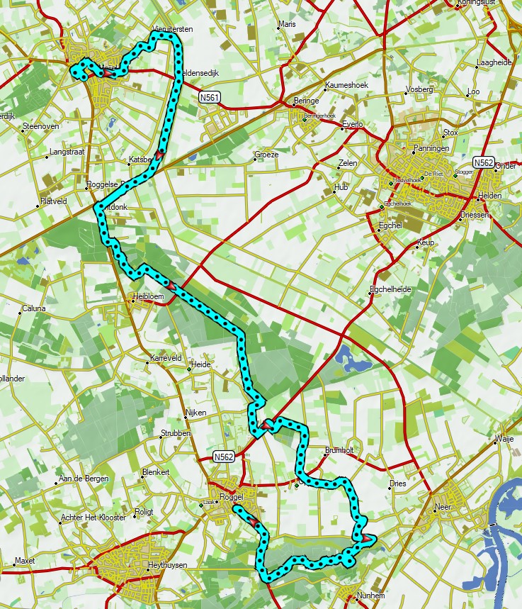 We beginnen met etappe in Meijel en wandelen richting het kanaal van Deurne en een gedeelte langs de Noordervaart verder richting het natuurpark Waterbloem en de Ophovense Zandberg. Daarna richting Ophoven en het Leudal naar het eindpunt van deze etappe, Roggel.