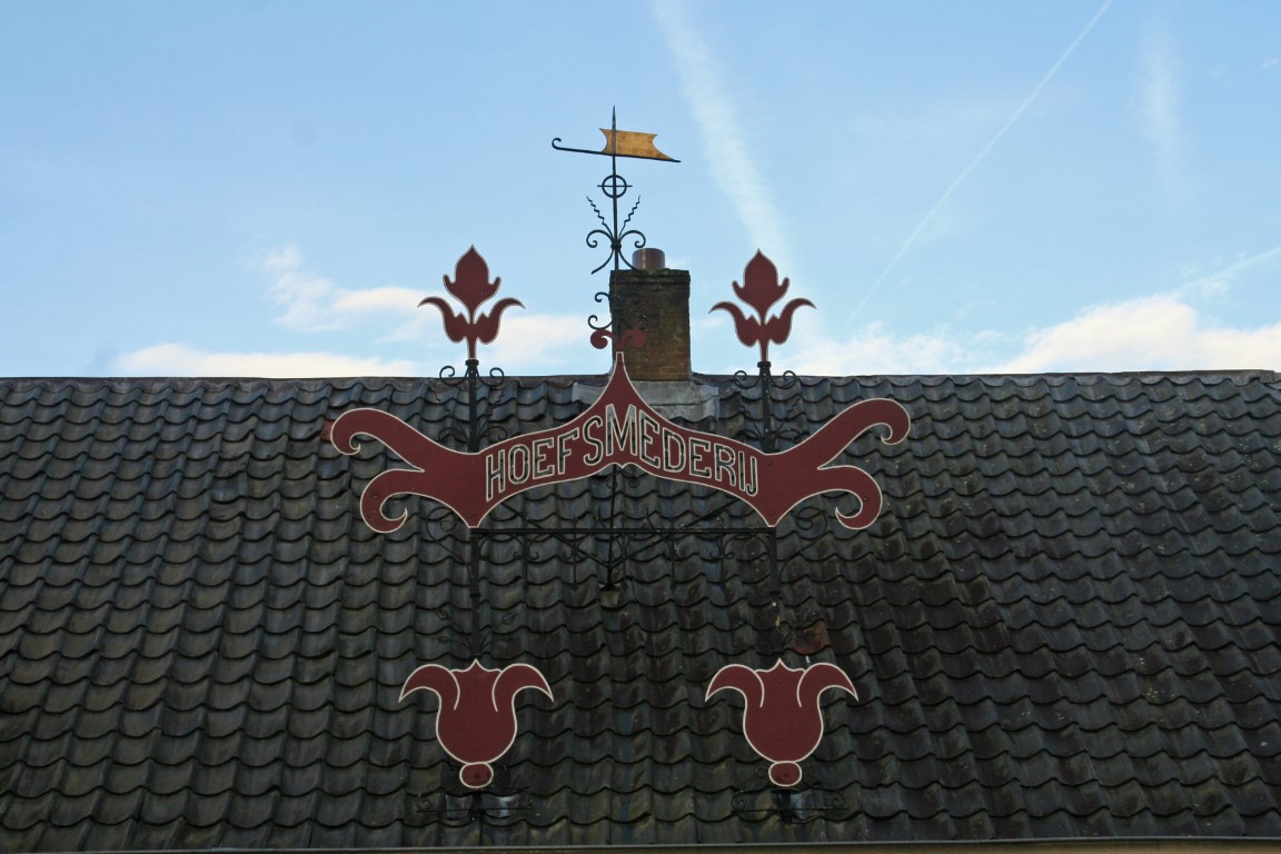 Kort na 1903 is het smeedijzeren ornament met de tekst ‘Hoefsmederij’ op het dak geplaatst. Vóór de smederij ligt in de stoep de koelput met