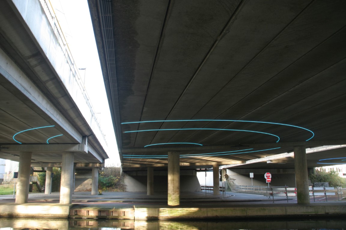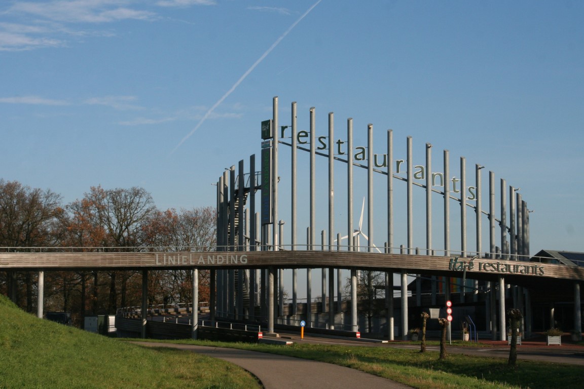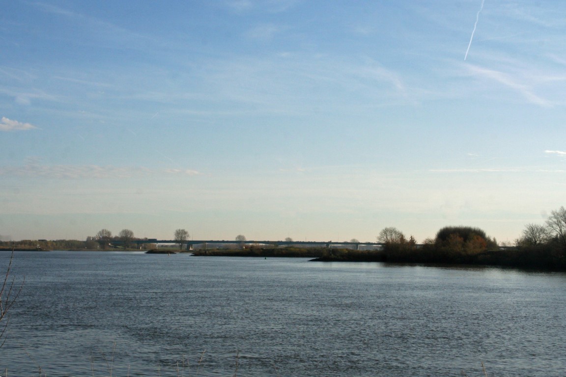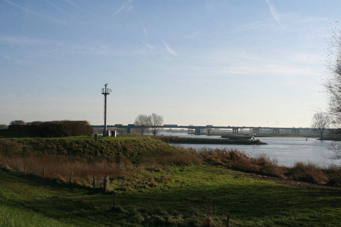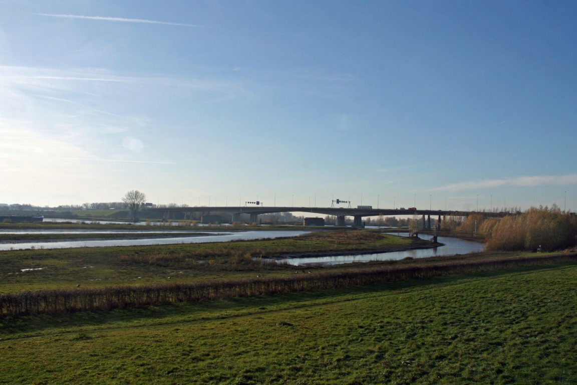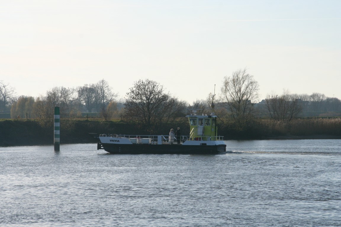 Links zien we het pontje over de Lek richting Vianen, rechtsboven de snelweg, de A2 en linksonder de A27.