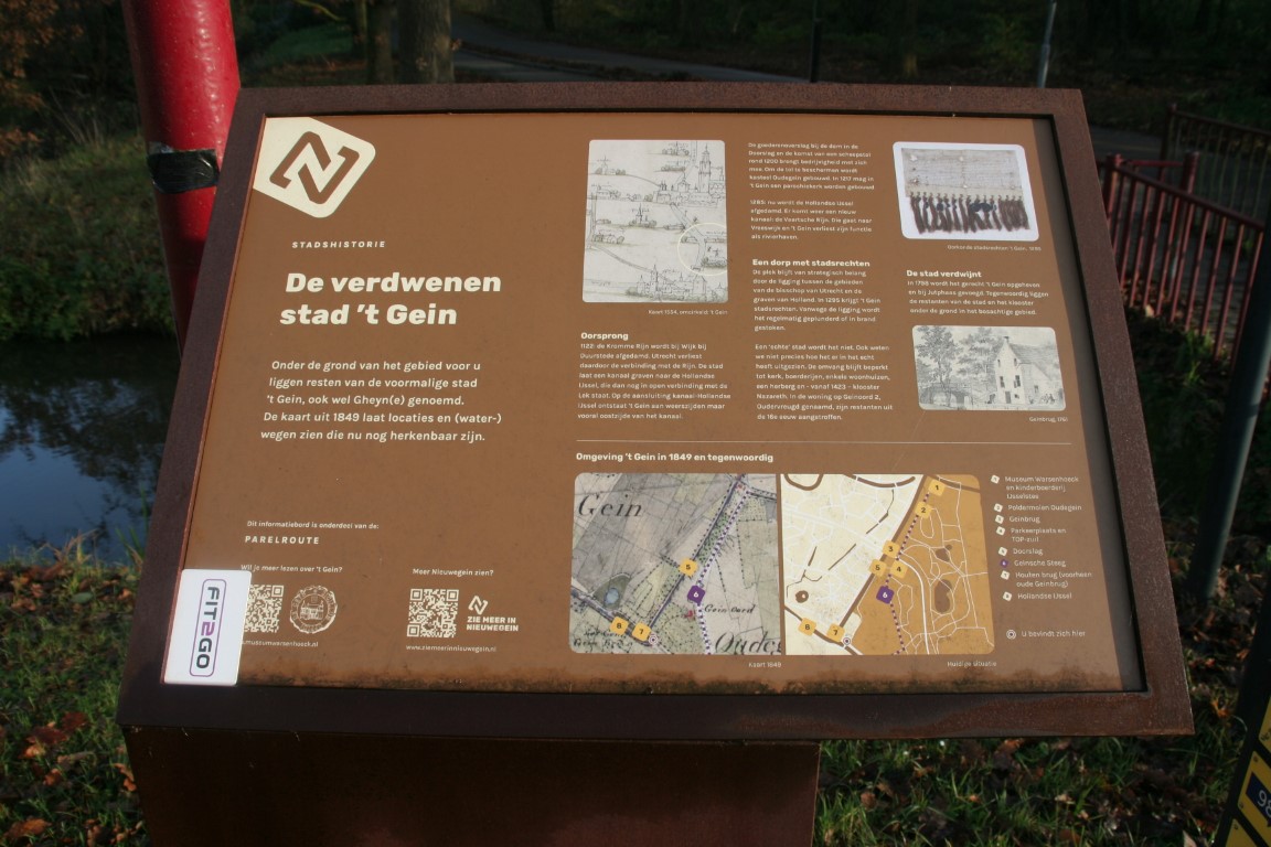 Het uiterste westen, waar de Kromme IJssel een aftakking vormt van de Hollandse IJssel, is de plek waar de historische stad Geyne zich bevond en in latere tijden de buurtschap Geinoord. De naam was afgeleid van het riviertje de Geine dat vanaf het huidige Oudegein naar de IJssel stroomde. Na het graven van de Vaartsche Rijn in 1127 werd het deel van een belangrijke waterverbinding met de stad Utrecht. Geyne kreeg stadsrechten in 1295 van de Utrechtse bisschop Jan van Sierck. Na het graven van kanaal de Doorslag in 1295 verlandde de Geine; een restant bevindt zich nog in het huidige park Oudegein. In 1333 werd de plaats door de Hollanders verwoest toen de graaf van Holland het Sticht Utrecht wilde veroveren, nadat bisschop Jan van Diest het door zijn wanbeleid verzwakt had. De functie van voorhaven voor de stad Utrecht werd vervolgens overgenomen door de plaats Vreeswijk. Geyne kwam vervolgens niet meer tot bloei. Begin 15e eeuw kwam het hier nogmaals tot verwoestingen en de plaats werd grotendeels verlaten. In 1423 is er het klooster Nazareth gesticht. In 1572 werd het klooster verlaten en bleef er alleen een buurtschap over, genaamd Geinoord en een gelijknamige weg. De voormalige buurtschap en weg zijn sinds het ontstaan van Nieuwegein onderdeel van de wijk en het park Oudegein. Deze laatste is vernoemd naar Huis Oudegein, welk zijn oorsprong heeft in de tijd van Geyne. Toen in 1971 de gemeentes Jutphaas en Vreeswijk fuseerden kreeg de nieuwe gemeente de naam Nieuwegein (‘Nieuw Gein’).