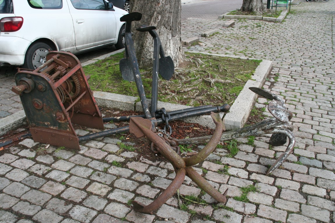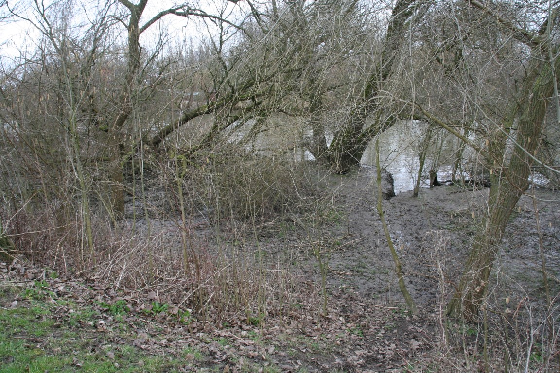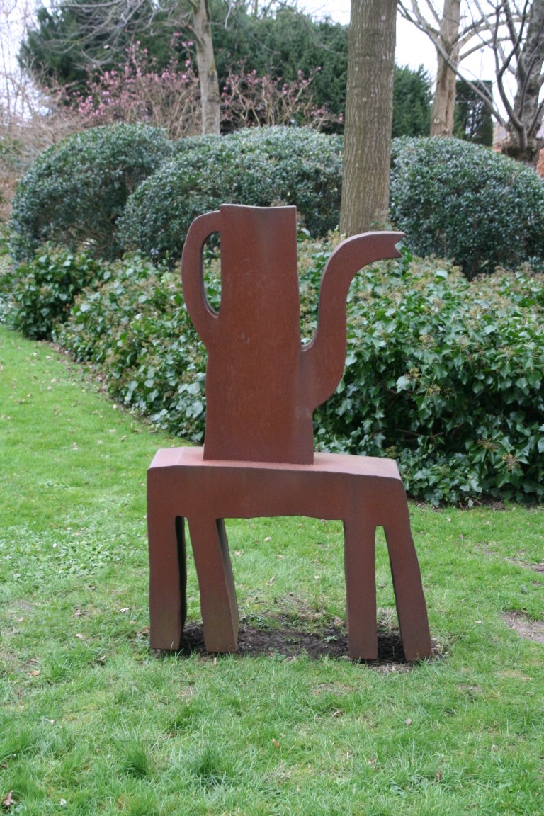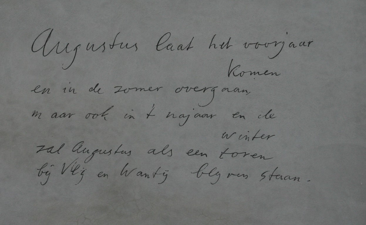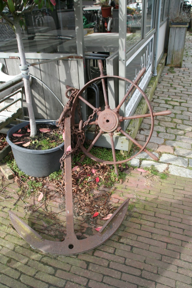 De ommuurde tuin van het complex. Deze muur is opgebouwd uit brokstukken van de gesloopte waterbassins en Belgisch hardsteen van een gesloopte kade op de kop van de Staart.