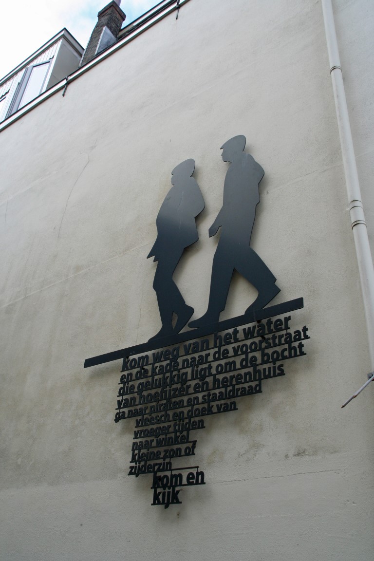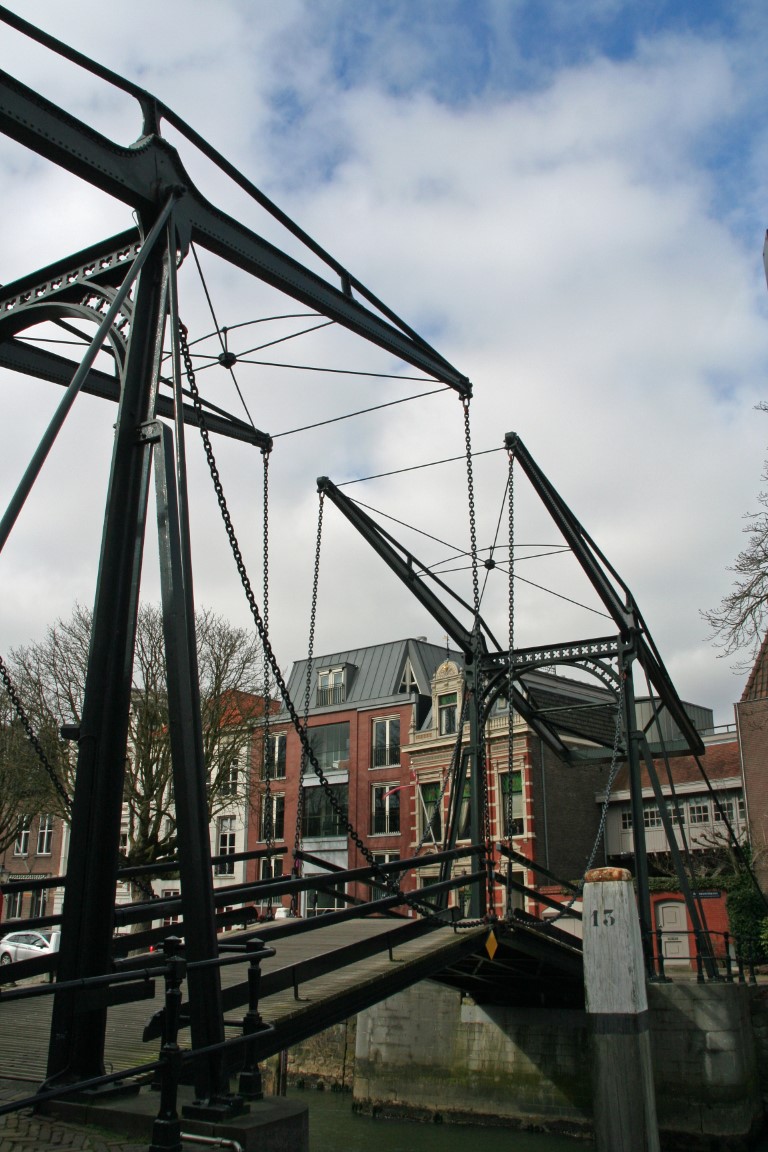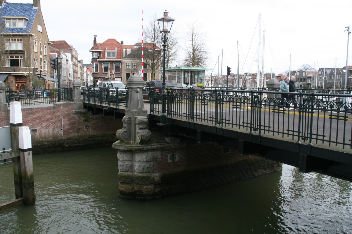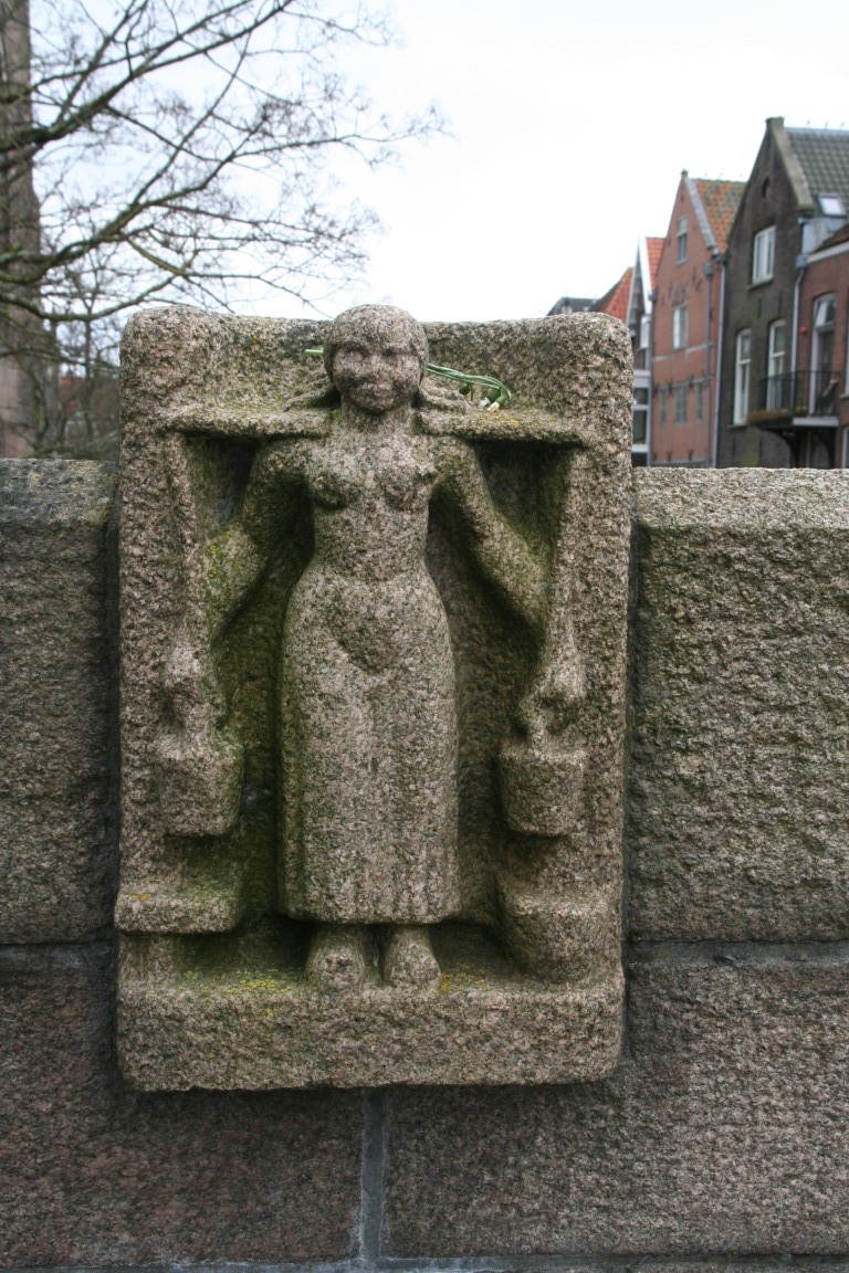 Verkeersbrug van het type boogbrug, in 1937 gebouwd. De brug is verfraaid met vier brugsculpturen. De sculpturen refereren aan de Middeleeuwse activiteiten ter plekke; een melkmeisje vanwege de melkschepen die aan de Pottenkade aanlegden om te lossen, een geboeide gevangene vanwege de Vuilpoort waar misdadigers werden opgesloten, een houtpikker vanwege de houtvletterij nabij de Vuilpoort en een dronken man die verwijst naar de aanwezige horeca.
