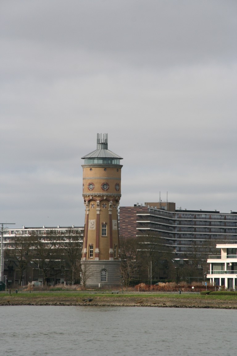 In 1882 werd aan de Noordendijk de eerste watertoren van de stad Dordrecht gebouwd. Het is de op een na oudste watertoren van Nederland. De toren heeft een kasteelachtig uiterlijk. De watertoren heeft een hoogte van 33 meter en een waterreservoir van 500 m3. De vierkante bakstenen torens bevatten destijds machinistenwoningen bestemd voor het personeel van het waterleidingbedrijf ter huisvesting. In 1938 werd de watertoren aangepast en moesten de hoektorentjes van de watertoren deels wijken wegens verbouwingen aan het waterreservoir. De toren was onderdeel van een waterfabriek van de Dordtse drinkwatervoorziening. Op het terrein werd rivierwater gezuiverd in open zandfilterbassins. De machines stonden in de watertoren; daar was ook een laboratorium dat de waterkwaliteit controleerde met forellen die tegen de stroom in zwommen. De watertoren verloor zijn oorspronkelijke functie in 1965.
