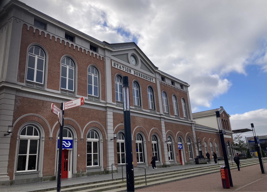 We verlaten het centrum van Dordrecht en wandelen verder naar het eindpunt van deze laatste etappe van het Waterliniepad, het station van Dordrecht.