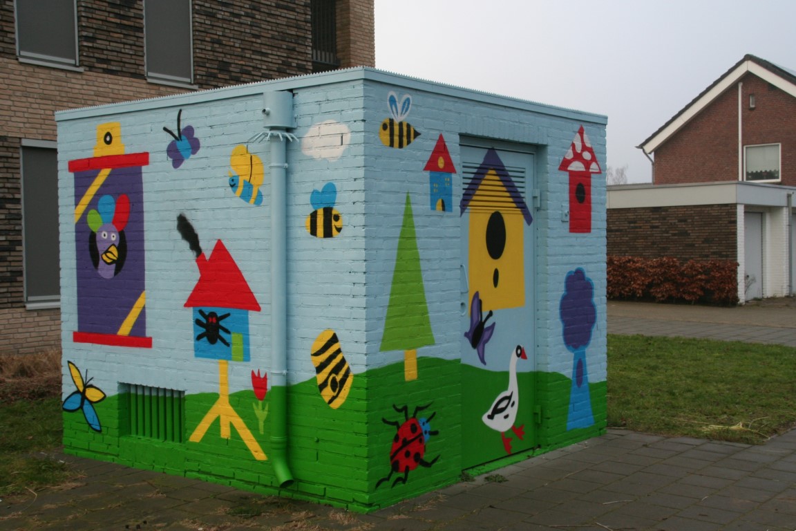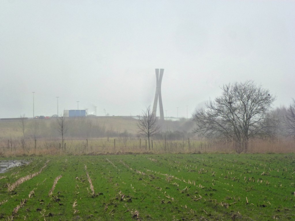 We beginnen deze wandeling op deze nevelige dag met een vrolijk gekleurd object.