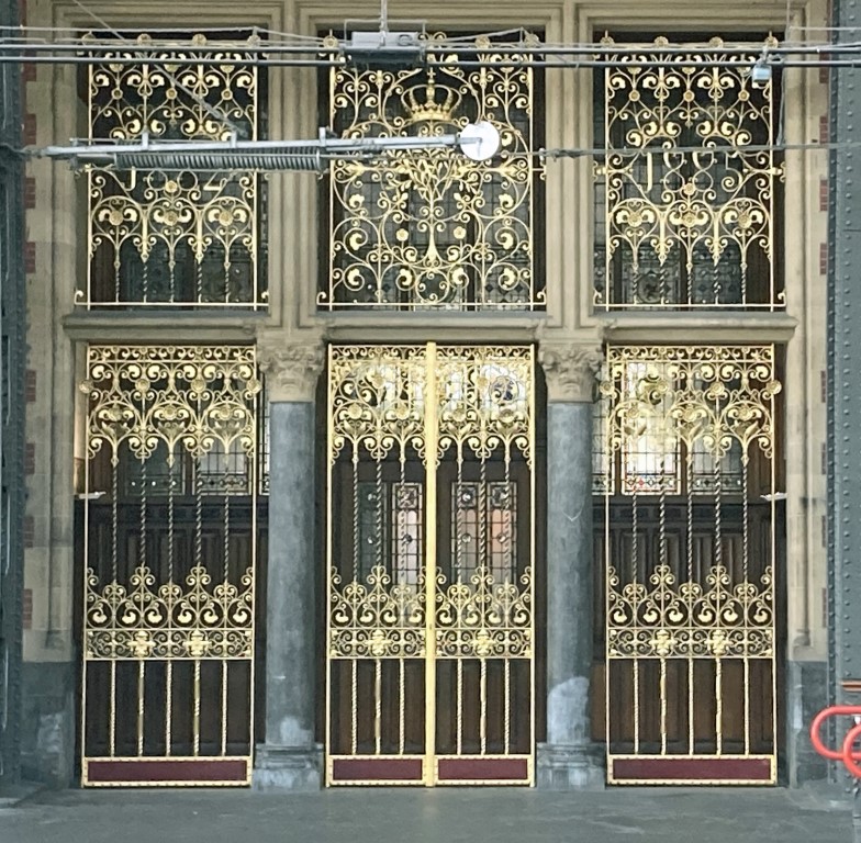 Tijdens de reis naar het startpunt van de derde wandeling via het centraal station in Amsterdam zien we onderstaand hekwerk.