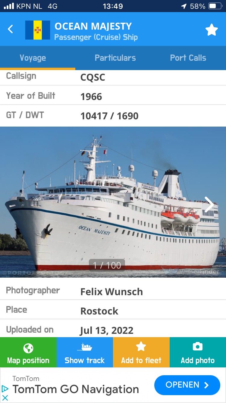 Het op de linker foto staande schip, in de verte, is de Ocean Majesty.