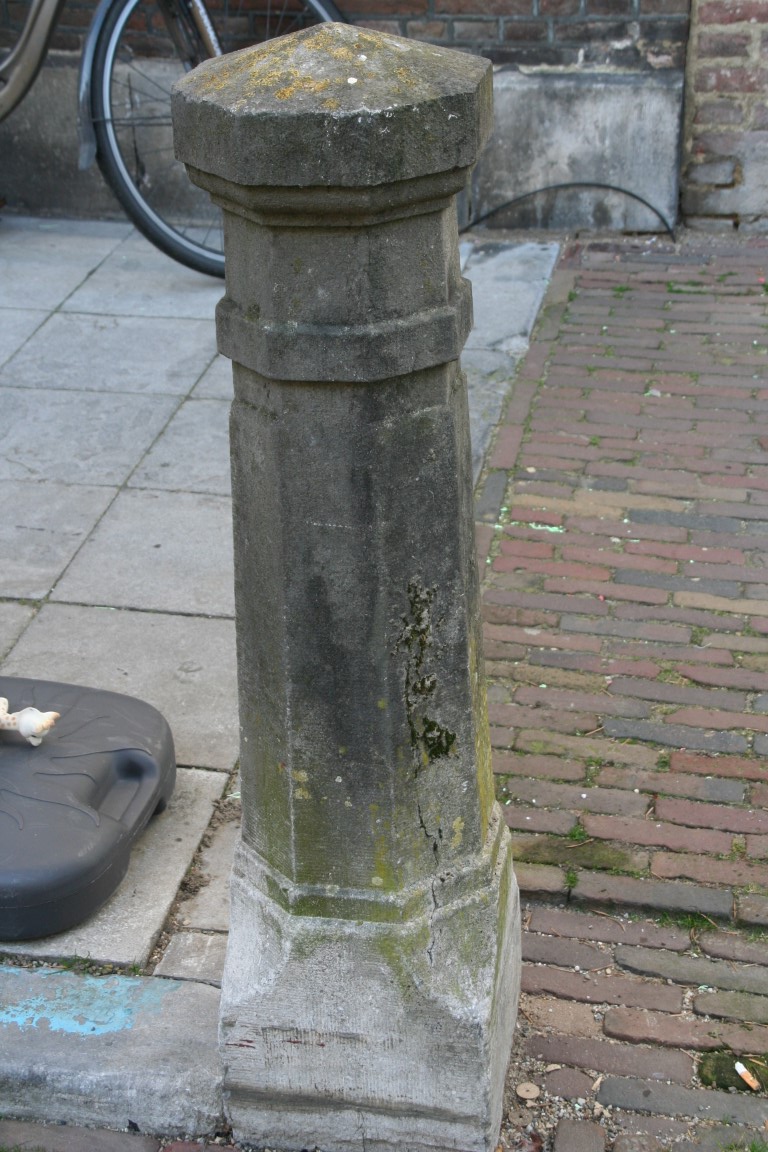 Rechts: Natuurstenen pomp uit 1798 met Lodewijk XVI motieven.