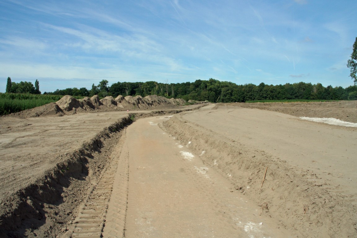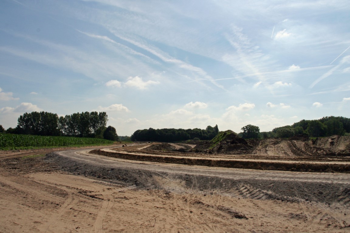 We wandelen verder langs de Bastenakkers richting Ten Ede. Onderweg zien we dat er flink wordt gewerkt. Er zijn grondwerken bezig om er een overstromingsgebied voor de Schelde te creëren. Hiervoor wordt er een een ringdijk opgetrokken. (Op de plek waar deze dijk wordt gemaakt loopt de route!) Deze dijk voorkomt dat er water vanuit het overstromingsgebied naar de achterliggende gebieden stroomt. Ook worden er twee uitwateringssluizen gebouwd. Daarna wordt de huidige Scheldedijk een halve meter verlaagd. De verlaagde en verstevigde dijk treedt in werking als overloopdijk bij stormtij. Bij uitzonderlijk hoge waterstanden stroomt rivierwater het gebied binnen. Zodra het water in de Schelde laag genoeg staat, stroomt het weer weg uit het gebied via de twee uitwateringssluizen in de overloopdijk. Het rivierwater stroomt naar die sluizen via een grachtenstelsel in het overstromingsgebied.