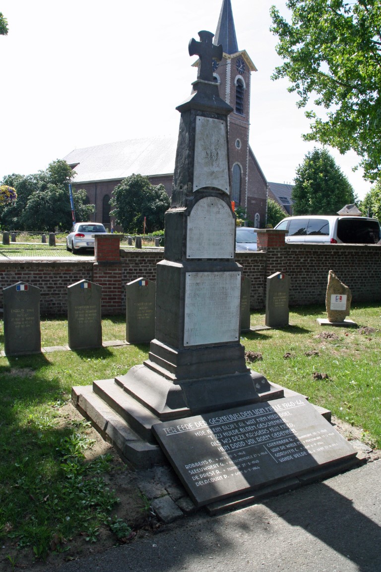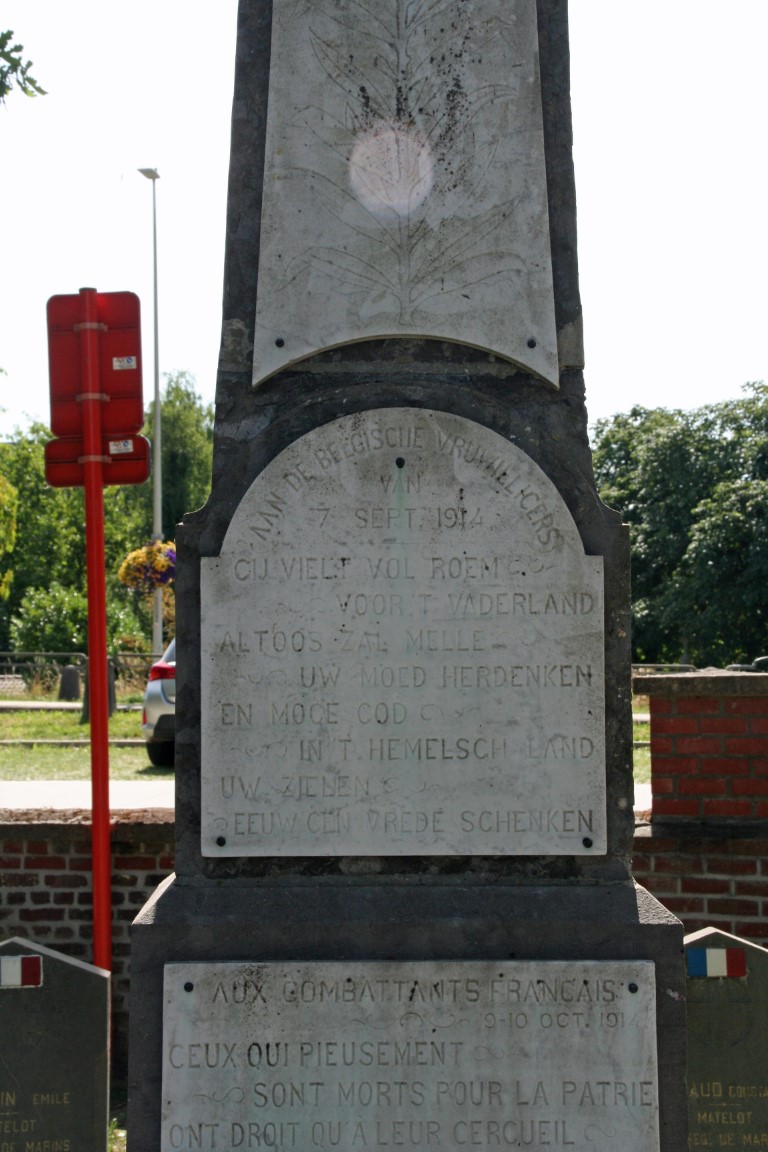 Tegenover de kerk vinden we een begraafplaats waarop zich de graven van 9 Franse marine fuseliers bevinden die sneuvelden in de Slag bij Melle op 9 en 10 oktober 1914.