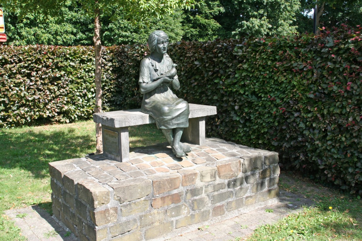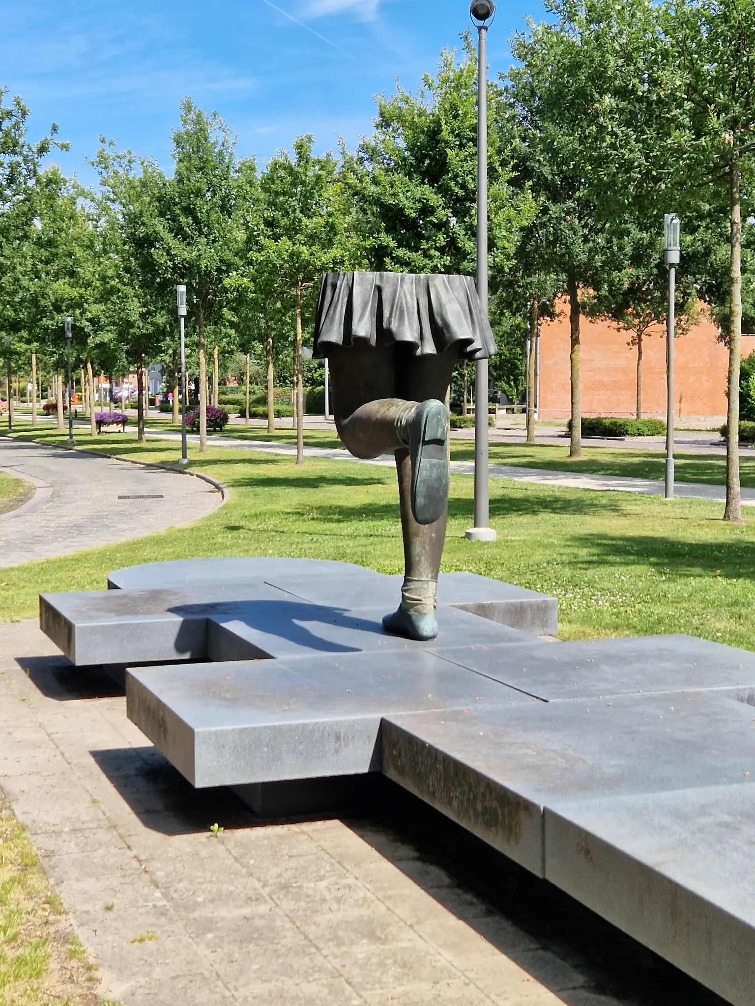 Het stelt twee meisjesbenen voor op een drie-dimensioneel hinkelspel met zeven vakken. Het beeld roept herinneringen op aan de tijd dat op straat spelen nog kon en is tegelijk een oproep om spelen opnieuw een plek te geven in de publieke ruimte. Het refereert eveneens aan de vele sprongen die de mens in zijn leven en binnen de maatschappij moet maken. De sokkel heeft de vorm van een grondplan van een kerk.