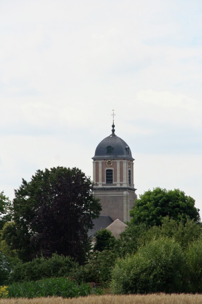 We wandelen verder richting het eindpunt van deze, Bottelare. We zien dat het landschap meer begint te glooien. Dit betekent dat we dichter bij de Vlaamse Ardennen komen. Zie hoogte profiel van deze etappe. In de verte zien we de kerktoren van de Sint Annakerk van Bottelare.