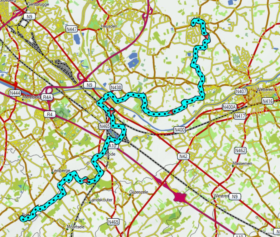 We komen steeds dichter bij de Schelde. We naderen Melle.