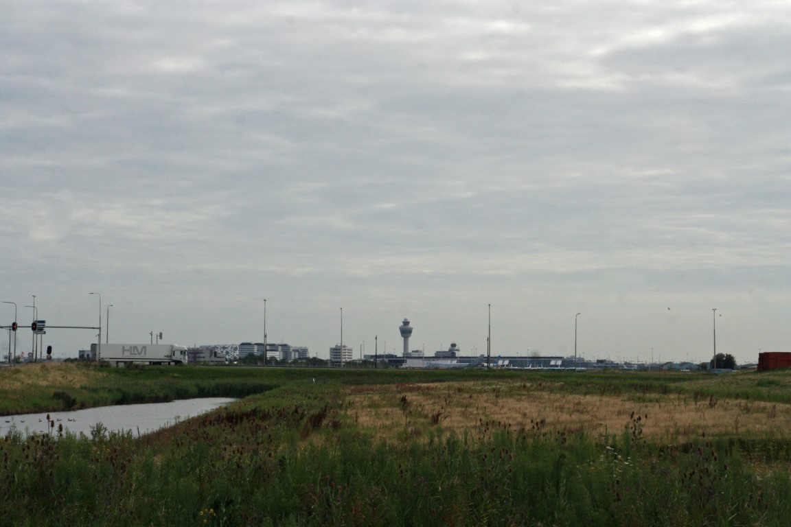We wandelen aan de zuidzijde van de luchthaven Schiphol hetgeen heel goed te merken is aan de overkomende vliegtuigen.