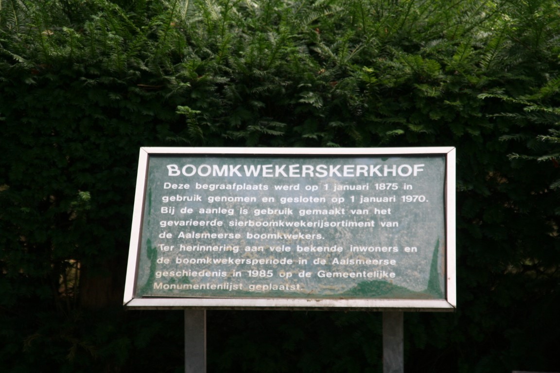 Deze bijnaam heeft de begraafplaats te danken aan de diverse soorten sierbomen die er groeien, een rijke diversiteit die teruggaat tot de oorsprong van deze plek. De bomen zijn tijdens de oprichting van de begraafplaats in 1875 door de lokale boomkwekers van Aalsmeer geschonken, waardoor deze oudste openbare begraafplaats van de stad een uniek karakter heeft gekregen. Het Boomkwekerskerkhof is tussen 1875 en 1970 in gebruik geweest.