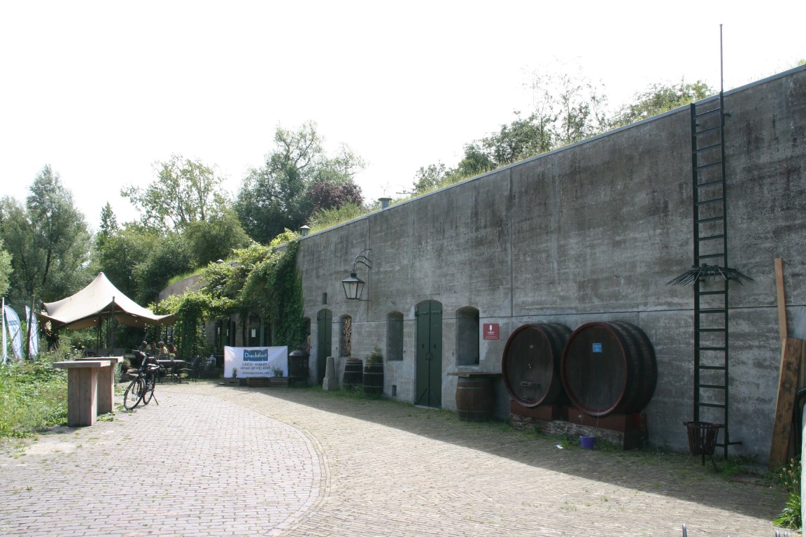 Het Fort aan de Drecht is van 1911. Vanwege bezuinigingen en het feit dat dit deel van de Stelling door inundatie goed verdedigbaar was, heeft dit fort geen voorgebouw en evenmin hefkoepelgeschut. In plaats daarvan beschikt het over een pantserkazemat met twee mitrailleursopstellingen. De nog aanwezige gebogen pantserplaat van nikkelgietstaal is twintig centimeter dik en weegt 23.000 kilo. Door een knik in het tracé van de hoofdverdedigingslijn was één kazemat aan de achterzijde (keel) voldoende om ondersteuningsvuur aan de beide buurtforten te kunnen geven. Oorspronkelijke functie Verdediging van de accessen gevormd door de Drecht en Kromme Mijdrecht met daarlangs lopende dijken. Ook diende het fort ter bescherming van een damsluis in de Drecht en een inundatiesluis in de dijk. Beide zijn verdwenen.