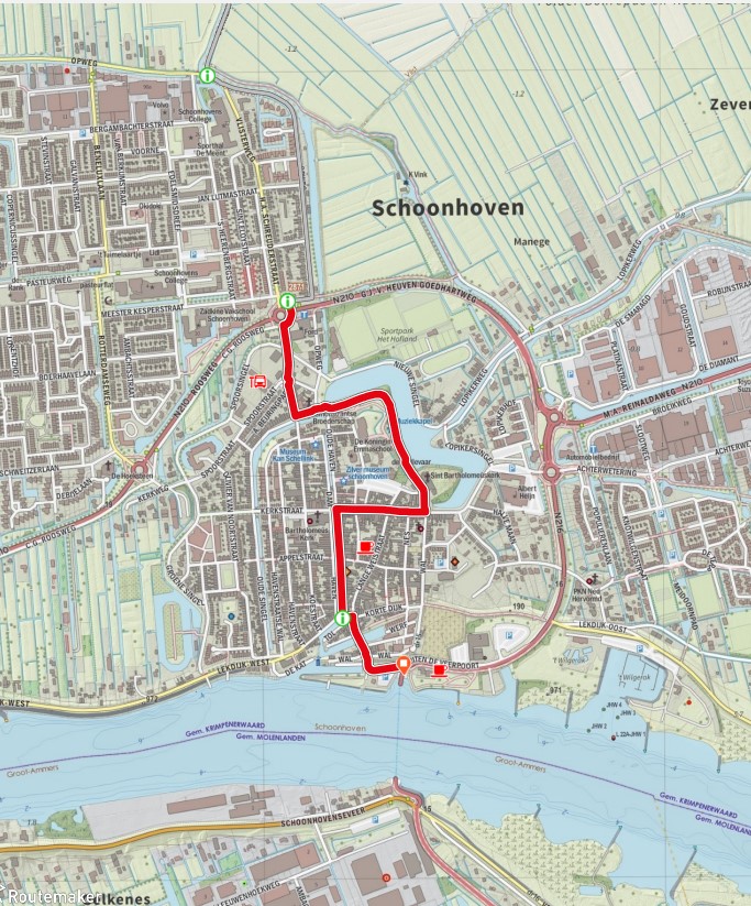 Met de pont over de Lek verlaten we Schoonhoven en wandelen richting Nieuwpoort waar de bus op ons wacht.