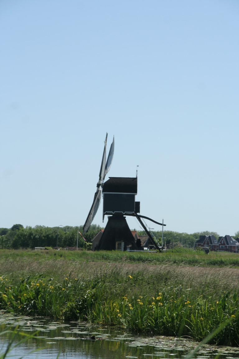 Rechts onder: Boezemmolen nr. 6 gelegen aan de Vlist. Het veenriviertje de Vlist diende als boezem, om het water uit de naastgelegen polders af te voeren. Dat gebeurde door natuurlijke afwatering. Omdat de polders steeds lager kwamen te liggen als gevolg van inklinking van de veenbodem verliep de afwatering steeds moeizamer. Rond 1155 werd de Vlist bedijkt om te voorkomen dat het water weer terugliep in de polders. Vanaf ongeveer 1450 werden de eerste molens gebouwd om de polders droog te houden. Ooit stonden er zeven molens langs de Vlist die de Hooge Boezem vol maalden. In 1914 werden er zes gesloopt. Van molen nr 6 bleef alleen de romp staan. Deze molen is later weer gerestaureerd. Meer info over deze molens is hier te vinden.