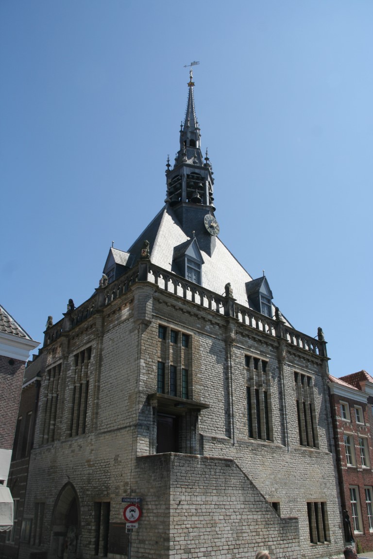 Stadhuis in gotische stijl, oorspronkelijk gebouwd als Waaggebouw met 50 klokken tellend carillon. .