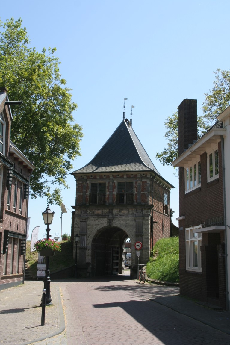 De Veerpoort is onderdeel van de waterkering en wordt bij hoogwater met houten deuren gesloten. In de poort staan op gedenktekens de waterhoogten van 1716 en van de watersnood van 1953 aangegeven.