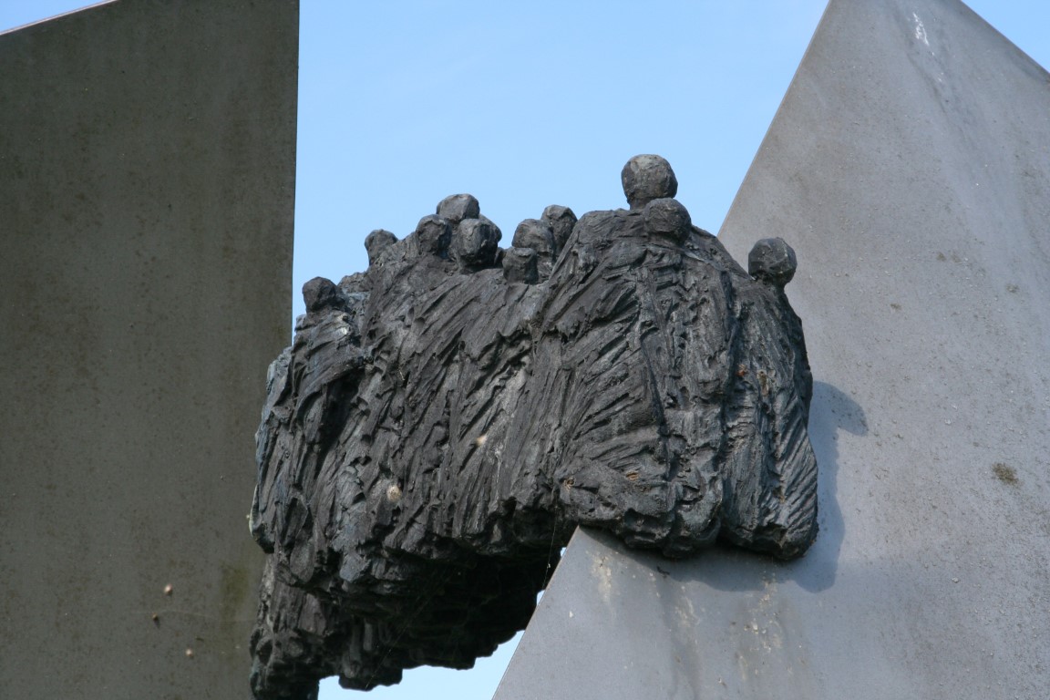 Twee plat gewalste platen met daartussen een groep mensen. Het kunstwerk herinnert ons aan het hoge water in 1995. In 1995 kwam het water zo hoog dat de Oooijpolder geëvacueerd moest worden. De dijk werd na het hoge water verzwaard, verbreed en verhoogd. Dat natuurlijk allemaal ter bescherming van het land en de mensen er achter.