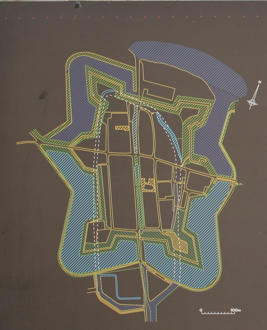 Op de foto links de Gravelandse poort. Doorgang in de zuidelijke stadswal. Zo’n doorgang wordt een coupure genoemd.