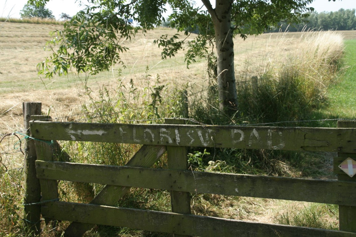 We wandelen verder langs de rivier de Lek waarbij een aanduiding hoe te lopen soms wel eens handig is. Of is het een boer die niet wil dat er over zijn land wordt gewandeld….