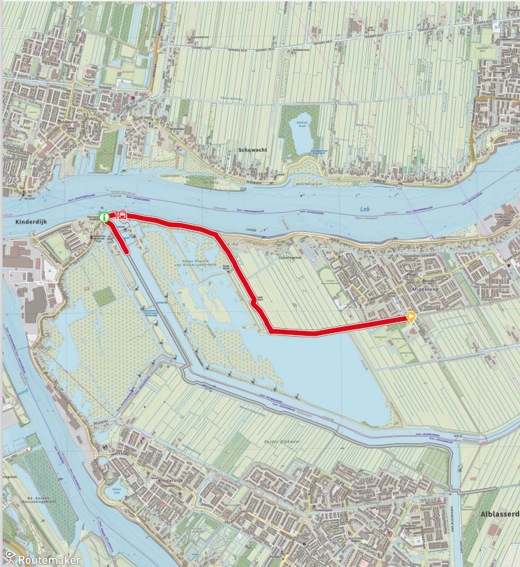 We starten in Streefkerk en wandelen richting Nieuw-Lekkerland, Kinderdijk en uiteindelijk naar Alblasserdam.