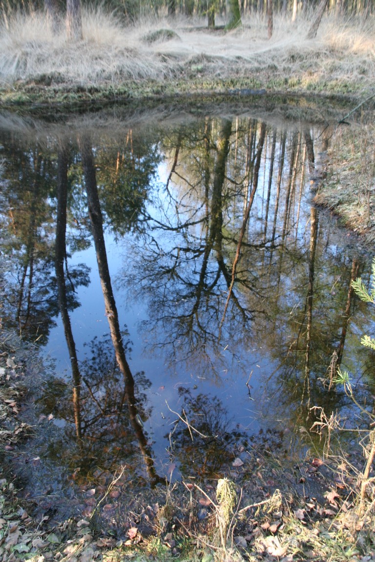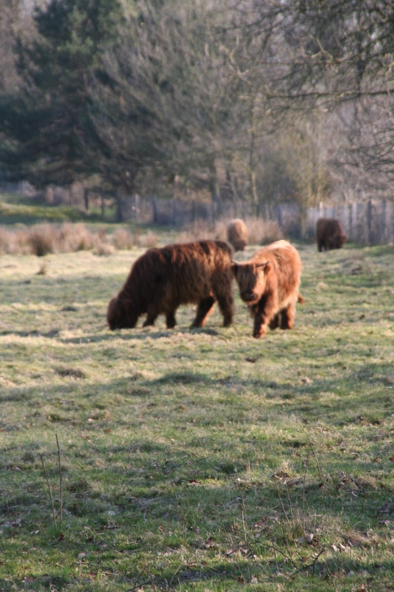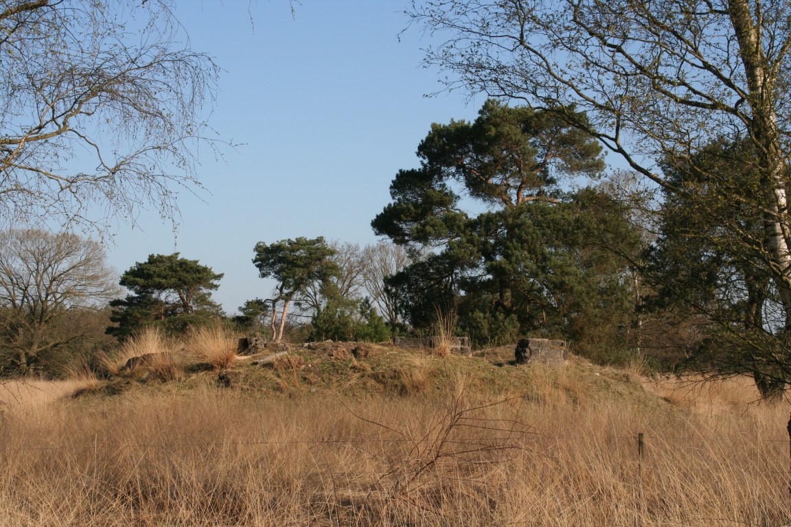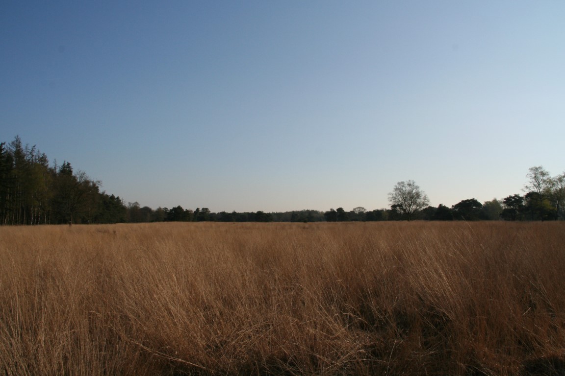 We wandelen verder en komen zo in een gebied terecht waar op de heide de grove den vrij spel heeft.